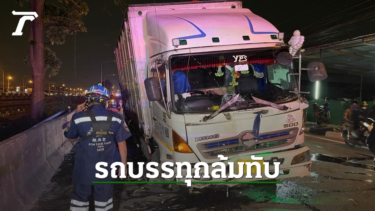 เกิดอุบัติเหตุ รถบรรทุก 2 คันเฉี่ยวชนกัน ก่อนที่คันหนึ่งจะพลิกตะแคงล้มทับร่างหนุ่มผู้ช่วยทันตกรรม ซึ่งขี่จักรยานยนต์ตามหลังมาจนเสียชีวิต