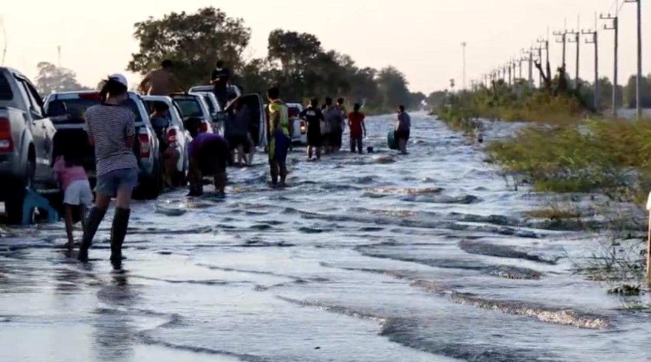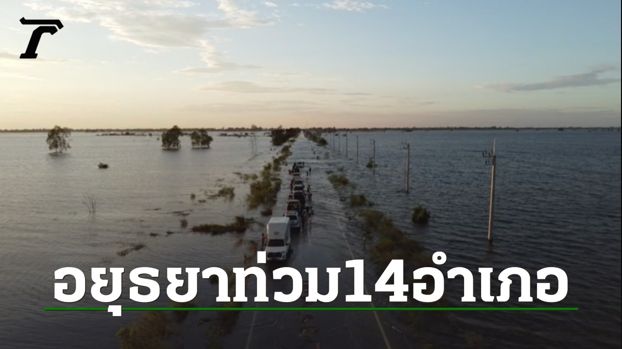อยุธยาอ่วมหนักท่วมรวม 14 อำเภอ กระทบเกือบ 5.5 หมื่นครัวเรือน ถนนสายบางบาล-ผักไห่ ปิดแล้ว รถเล็กห้ามผ่านเนื่องจากน้ำสูง จนเป็นแลนด์มาร์กใหม่ ตอนนี้ชาวบ้านพาลูกหลานเล่นน้ำ ไม่ต้องไปทะเลแล้ว