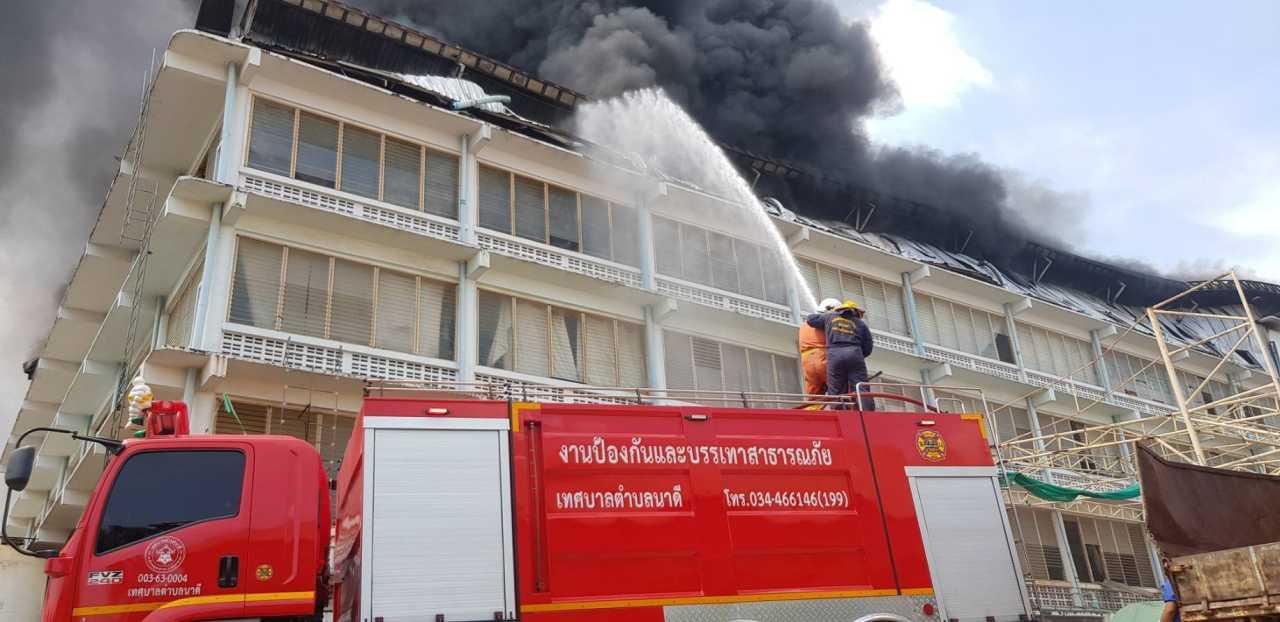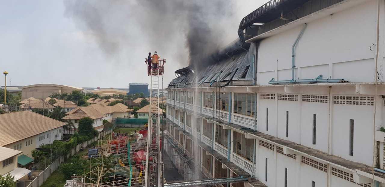 จากการสอบถามนายวิษณุ สาธานี อายุ 26 ปี เจ้าหน้าที่ รปภ.ของโรงงาน บอกว่า เหตุเกิดตอนประมาณ 11 โมงกว่าๆ ตอนนั้นตนเองปฏิบัติหน้าที่ดูแลระบบรถเข้าออกบริษัทฯ ช่วงนั้นพอดีกับที่ตนเองมองขึ้นไปชั้นบน ก็เห็นไฟลุกมาจากมุมด้านขวาสุดของชั้นที่ 5 จึงรีบแจ้งเจ้าหน้าที่โรงงานและพนักงานที่กำลังทำงานอยู่กว่า 100 คนให้ได้รับทราบ แต่เพลิงก็ได้ลุกไหม้อย่างรวดเร็วประกอบกับเป็นอาคารสูง จึงยากเกินกำลังของทางโรงงานจะควบคุมไว้ได้ ต้องรีบประสานแจ้งไปยังเจ้าหน้าที่ตำรวจเพื่อขอกำลังของเจ้าหน้าที่ดับเพลิงจาก อบต.ในพื้นที่และพื้นที่ใกล้เคียงให้นำรถน้ำเข้ามาช่วยสกัด ขณะที่คนงานซึ่งกำลังทำงานอยู่ตั้งแต่ชั้นที่ 1-3 นั้น ก็หนีออกมาได้อย่างปลอดภัยทั้งหมด