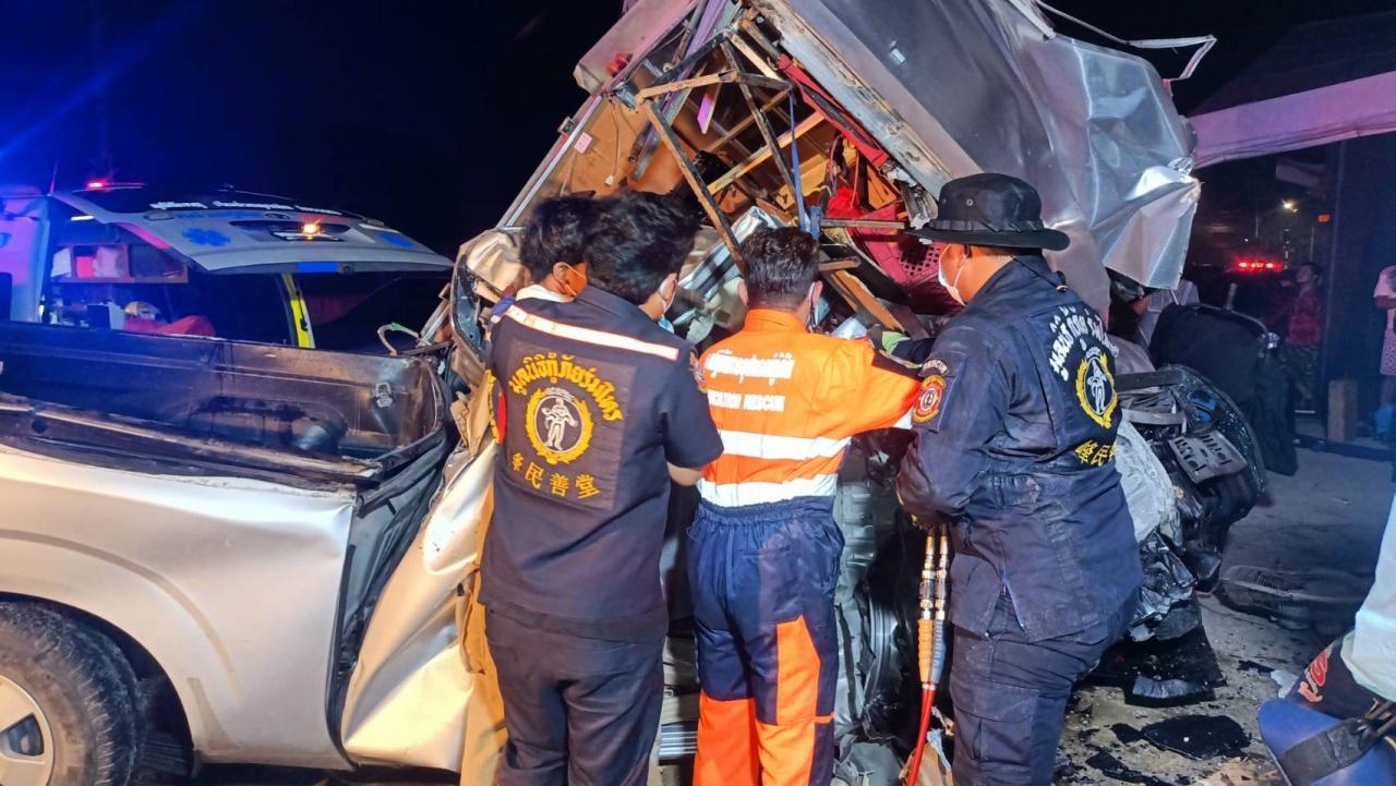 กระบะขนอุปกรณ์กองถ่ายหนัง หลับในชนเสาไฟริมถนนไสวประชาราษฎร์ อ.ลำลูกกา เจ็บติดภายใน 3 ราย กู้ภัยนำส่ว รพ.หมดแล้ว คาดว่าคนในรถจะหลับกันหมด รวมทั้งคนขับก็อาจหลับใน ตร.เร่งสอบสวนดำเนินการต่อไป