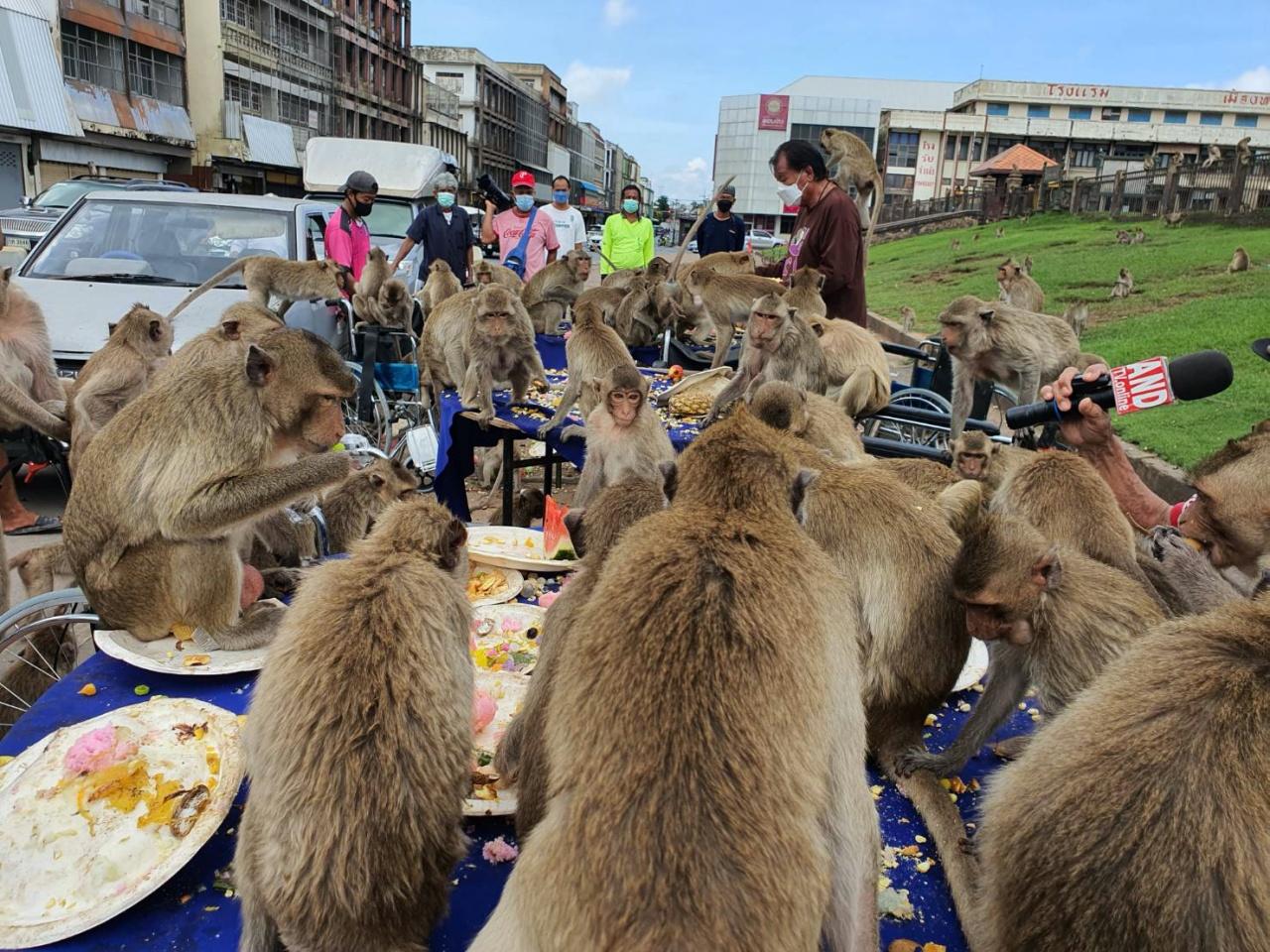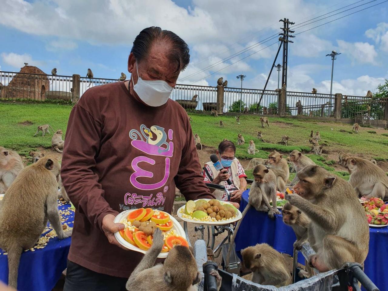 ที่พระปรางค์สามยอด อ.เมือง จ.ลพบุรี นายยงยุทธ กิจวัฒนานุสนธิ์ หรือ “เสี่ยยี่” ผู้ที่โด่งดังเกี่ยวกับการจัดเลี้ยงโต๊ะจีนลิง ได้นำผลไม้ใส่รถเข็นวีลแชร์มาเลี้ยงลิง ที่ต่างมารุมกินผลไม้กันอย่างเอร็ดอร่อย หลังจากเว้นว่างมานานเนื่องจากสถานการณ์โรคโควิด-19 ทำให้ไม่มีนักท่องเที่ยวและประชาชนมาให้อาหารเหมือนเคย