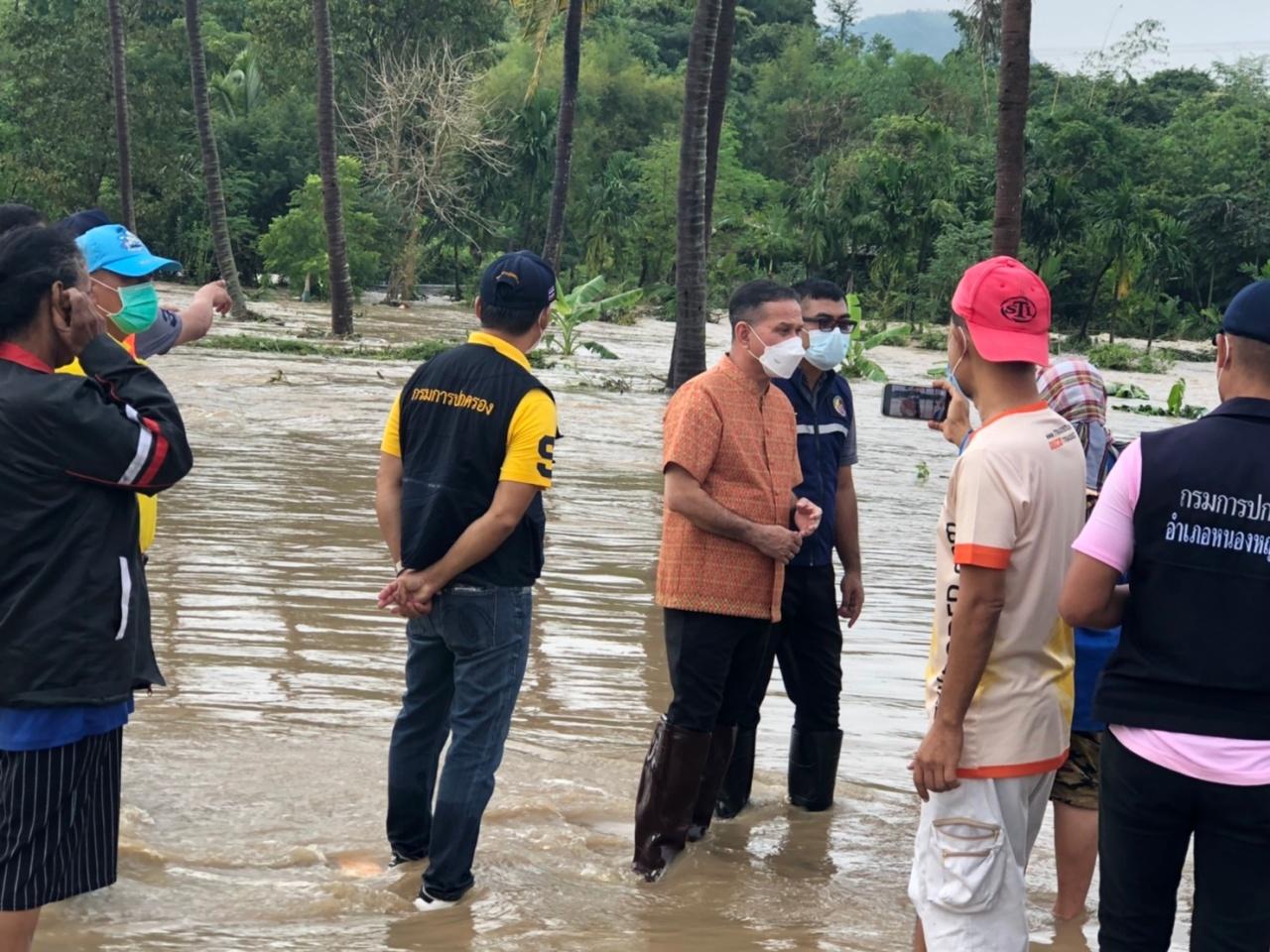 ขณะที่ นายณัฐวุฒิ เพ็ชรพรหมศร ผู้ว่าราชการจังหวัดเพชรบุรี พร้อมด้วยป้องกันและบรรเทาสาธารณภัยจังหวัด, นางขนิษฐา ธิติดิลกรัตน์ ปศุสัตว์จังหวัดเพชรบุรี, นายทวิช เที่ยวมาพบสุข นายอำเภอหนองหญ้าปล้อง, หัวหน้าส่วนราชการ ทหาร ตำรวจ เจ้าหน้าที่หลายหน่วยงาน กำนัน ผู้ใหญ่บ้าน อาสาสมัครกู้ภัยมูลนิธิสว่างสรรเพชญธรรมสถานจังหวัดเพชรบุรี ทยอยลงพื้นที่ อ.หนองหญ้าปล้อง จ.เพชรบุรี ตั้งแต่ช่วงเช้าของวันที่ 9 พ.ย.64 เพื่อช่วยเหลือประชาชน ที่ถูกน้ำป่าไหลหลากเข้าท่วมบ้านเรือน และคอกสัตว์ เบื้องต้นไม่มีผู้ได้รับบาดเจ็บ