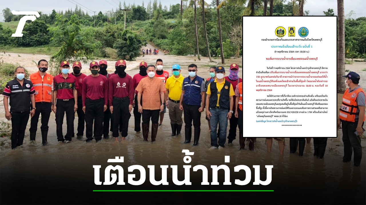 ในวันที่ 9 พฤศจิกายน 2564 โครงการส่งน้ำและบำรุงรักษาเพชรบุรี มีความจำเป็นที่จะต้อง ปรับเพิ่มการระบายน้ำจากเขื่อนเพชรลงแม่น้ำเพชรบุรี มากกว่า 150 ลูกบาศก์เมตรต่อวินาที (ล่าสุดเมื่อเวลา 06.00 น. เขื่อนเพชรเปิดระบายลงแม่น้ำเพชรบุรี 362.972 ลูกบาศก์เมตร/วินาที คาดการณ์ว่าจากการระบายน้ำ จะส่งผลให้ #น้ำในแม่น้ำเพชรบุรีล้นตลิ่ง และไหลเข้าท่วมในพื้นที่ลุ่มต่ำ โดยมวลน้ำดังกล่าว จะมาถึงเขตเทศบาลเมืองเพชรบุรี ในเวลาประมาณ 16.00 น. ของวันที่ 10 พฤศจิกายน 2564