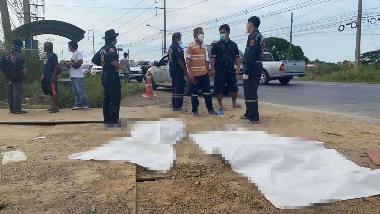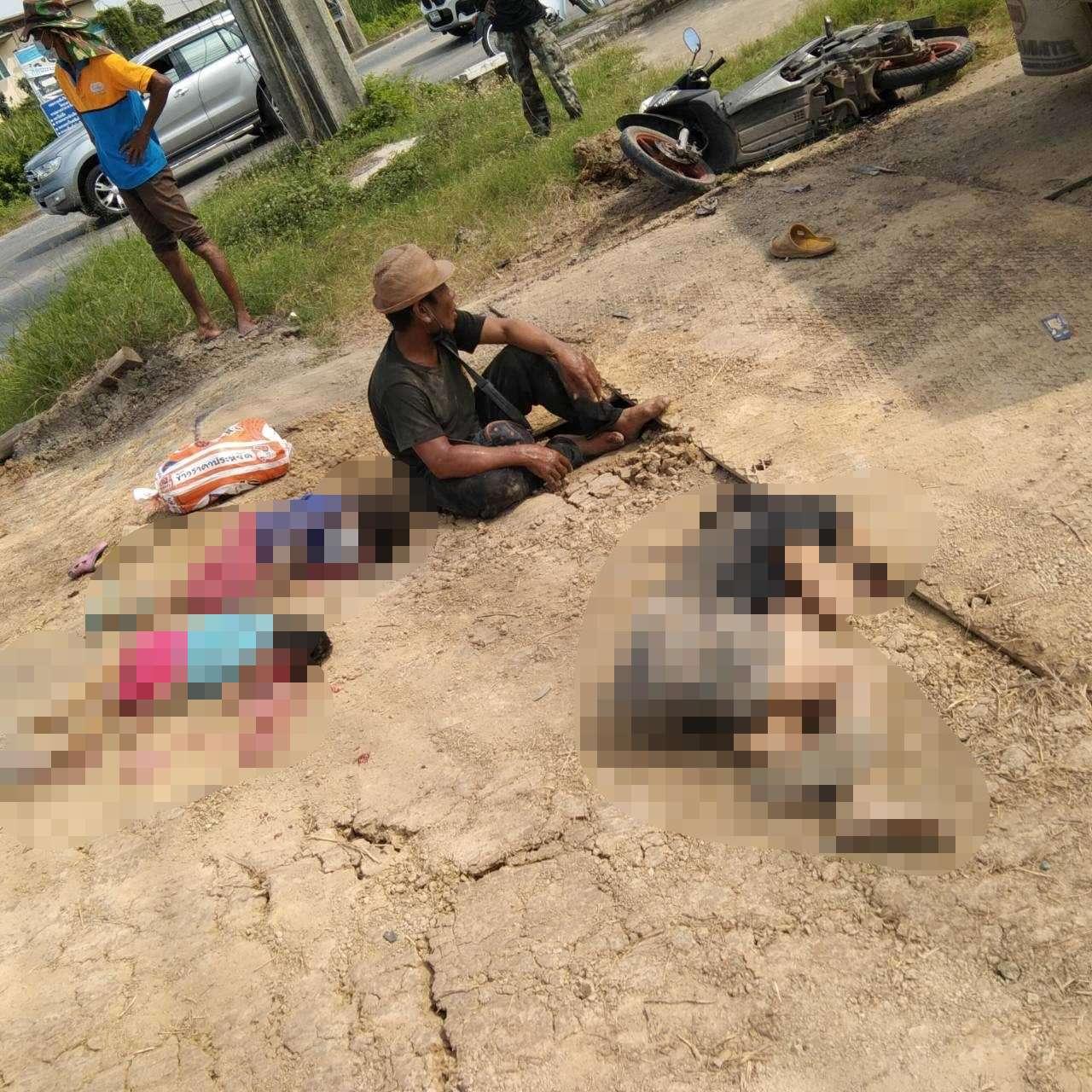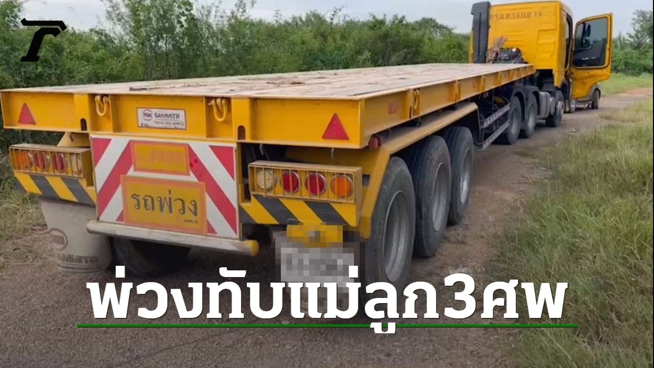 รถพ่วงหัวลาก 22 ล้อ มาบรรทุกแท่งแบริเออร์ ขณะเลี้ยวซ้ายเข้าไซต์ริมถนนใกล้สามแยกทางตลาดลำไทร อ.ลำลูกกา ปทุมธานี ชน จยย.ทับ แม่กับลูกแฝดชายหญิงถูกรถทับตาย 3 ศพ ส่วนพ่อคนขี่บาดเจ็บ ตัวส่ง รพ.