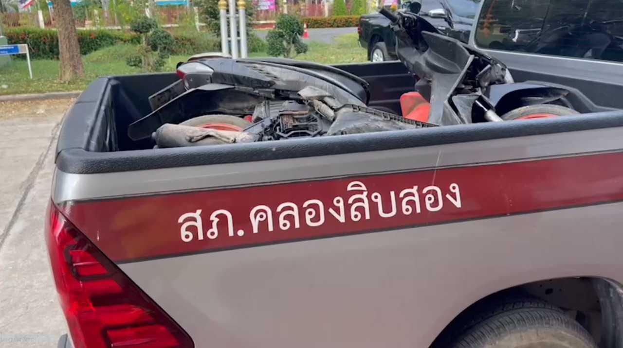 จากการสอบสวนนายภวาสา โพธิ์ศรีทอง อายุ 59 ปี ชาวบ้าน ตำบลคลองพระอุดม อำเภอลาดหลุมแก้ว จังหวัดปทุมธานี ผู้ขับขี่รถพ่วงคู่กรณี กล่าวว่า ตั้งแต่ช่วงเช้าขับรถได้มาขนแท่งแบริเออร์ จากตรงจุดเกิดเหตุ เพื่อไปคลอง 15 โดยเที่ยวนี้กำลังจะเลี้ยวซ้ายเพื่อที่จะเข้าไปขนแทงเเบริเออร์ ไม่เห็นรถคู่กรณีที่ขับมา จึงได้เลี้ยวเข้าไปด้านในแต่ยังไม่ทันหมดคัน จนมีคนวิ่งมาบอกว่า ขับรถทับคนเสียชีวิต ตนจึงได้ลงจากรถแล้วเดินมาดู ก็พบว่ามีผู้เสียชีวิตและได้รับบาดเจ็บ ตนจึงยืนรอก่อนจะมีตำรวจ และจนท.กู้ภัยมาถึงที่เกิดเหตุ