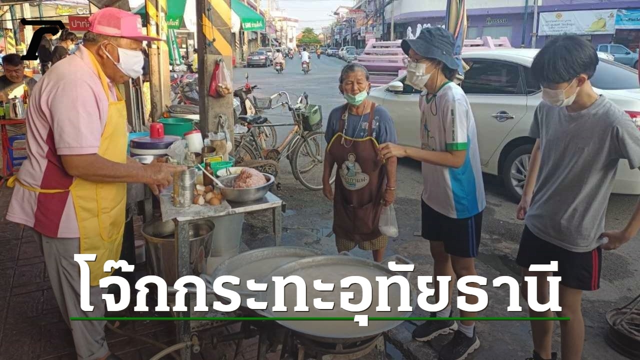เมื่อเวลา 06.00 น. วันที่ 8 ธันวาคม 2564 ผู้สื่อข่าวลงพื้นที่ไปยัง ร้านโจ๊กกระทะโบราณอร่อย ตั้งอยู่ริมทางเท้าหน้าห้องแถวไม้เก่า บริเวณวงเวียนน้ำพุ เขตเทศบาลเมืองอุทัยธานี ที่ใครมาจังหวัดอุทัยธานี ต้องมาชิมให้ได้ เพราะนอกจากรสชาติจะอร่อย เลื่องลือระบือทั่วจังหวัดแล้ว อุปกรณ์ที่ใช้ต้มโจ๊กยังจะไม่เหมือนที่อื่นๆ ด้วย และนี่ก็คือ ร้านโจ๊กกระทะร้อนสูตรจากก๋ง (คุณปู่) ที่เดินทางหอบเสื่อหมอนใบมาจากเมืองซัวเถาประเทศจีนแผ่นดินใหญ่ มาตั้งรกรากอยู่ที่จังหวัดอุทัยธานี