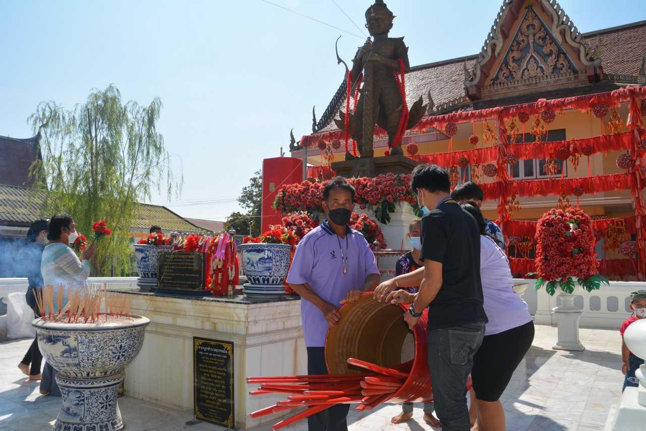 เมื่อวันที่ 15 ธ.ค. 2564 ผู้สื่อข่าวรายงานว่า ที่วัดพังม่วง ต.วังน้ำซับ อ.ศรีประจันต์ จ.สุพรรณบุรี ใกล้วันหวยออก ได้มีนักเสี่ยงดวง เดินทางมาจากทั่วสารทิศ มากราบไหว้ขอพรท้าวเวสสุวรรณ องค์ใหญ่ที่สุดในสุพรรณบุรี กันอย่างมากมาย โดยได้นำดอกกุหลาบสีแดง เทียนสีแดง และของไหว้สีแดงมาไหว้ขอพร ขอโชคขอลาภกันอย่างมากมาย