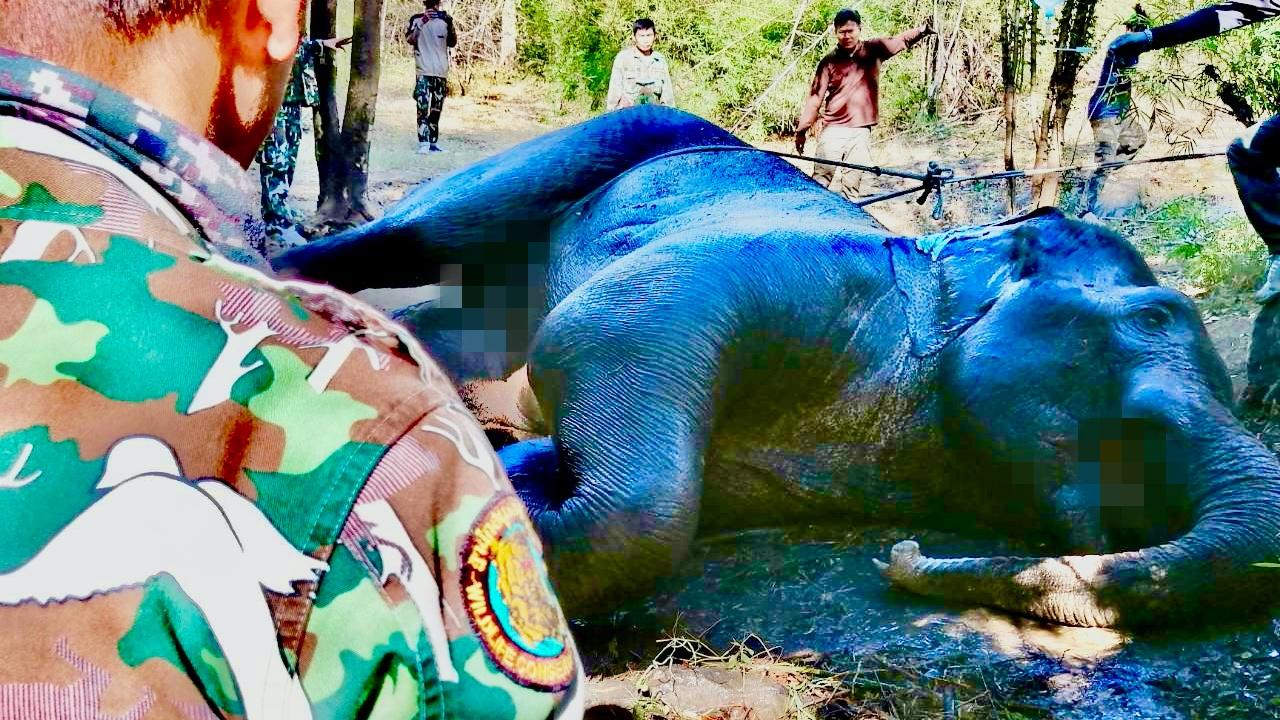 ช้างป่าสลักพระ ถูกรถกระบะพุ่งชนริมถนน สาย 3199 เมื่อ 2 วันที่ผ่านมา ล้มเสียชีวิตแล้ว พบเป็นเพศผู้อายุ 30 ปี จนท.นิมนต์พระมาสวด ผ่าซากพิสูจน์ก่อนฝังกลบ