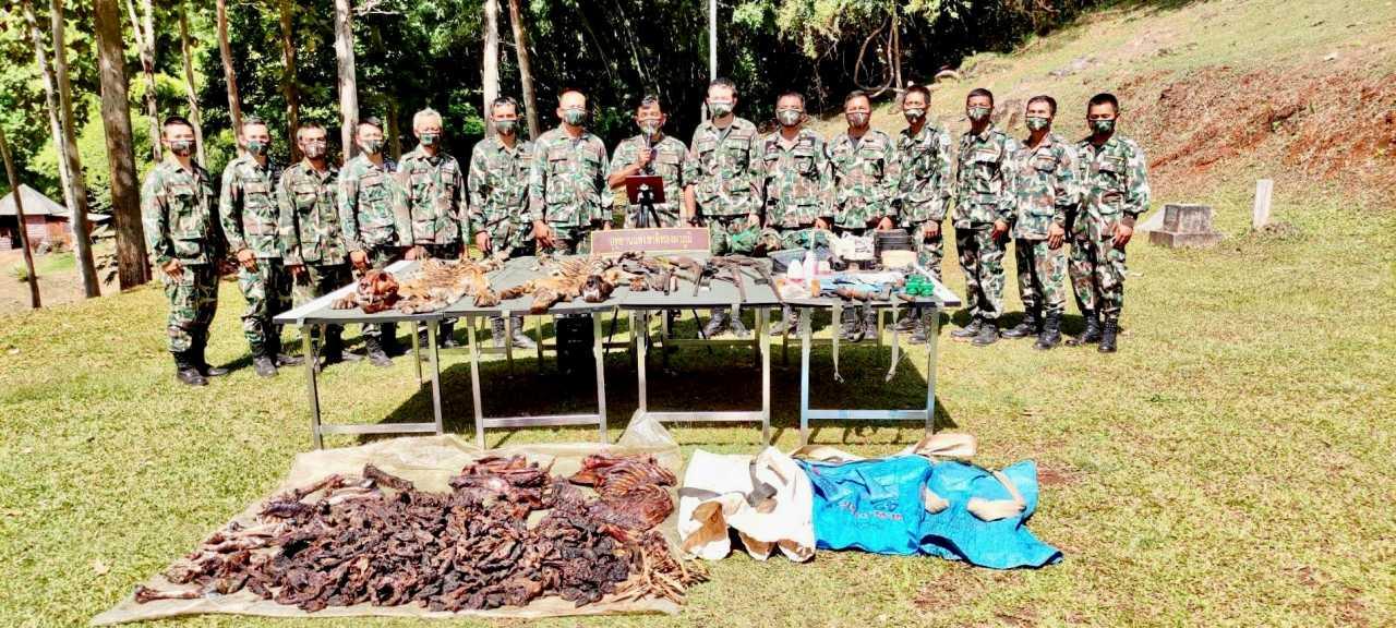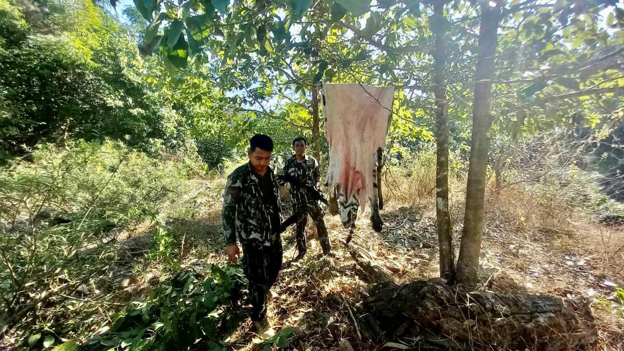 ในที่เกิดเหตุได้ตรวจพบแคร่ร้านย่างเนื้อสัตว์ และซากเสือโคร่ง จำนวน 2 ตัว สันนิษฐานว่าเป็นเสือโคร่ง ออกหากินระหว่างชายแดนไทย-เมียนมา พร้อมอาวุธปืน จำนวน 4 กระบอก และอุปกรณ์การกระทำผิดอื่นๆ รวม 29 รายการ ในระหว่างการดำเนินการของเจ้าหน้าที่ ในวันที่ 11 มกราคม 2565 เวลา 16.31 น ได้มีสายโทรศัพท์หมายเลข 098 367XXXX ทราบชื่อว่านายป้อม โทรหาเจ้าหน้าที่อุทยานแห่งชาติ เพื่อติดต่อเพื่อขอคืนปืนลูกซอง 5 นัด ยี่ห้อวินเชสเตอร์ หมายเลขประจำปืน 1526415 โดยแจ้งว่าปืนลูกซอง 5 นัดดังกล่าว เป็นของเจ้าหน้าที่ อปพร.รายหนึ่ง