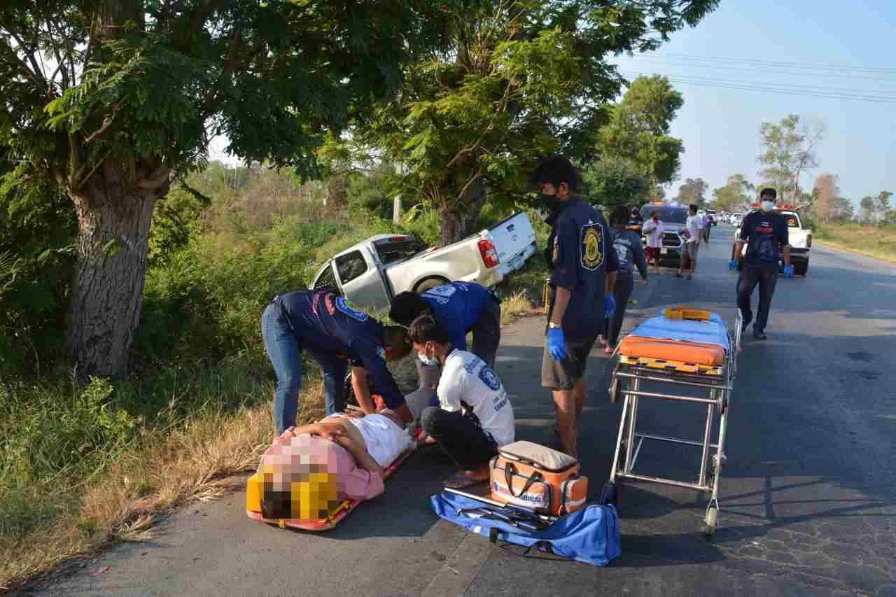 กระบะพ่อแม่ลูกเสียหลักชนต้นไม้ริมถนน สุพรรณบุรี - สองพี่น้อง หน้าทางเข้าวัดดอนกระเบื้อง อ.บางปลาม้า ทำให้ชายวัย 43 ปีคนขับเสียชีวิต ญาติที่นั่งมาด้วยเจ็บ 2 ราย ญาติคาดหักหลบรถตัดหน้ากะทันหัน