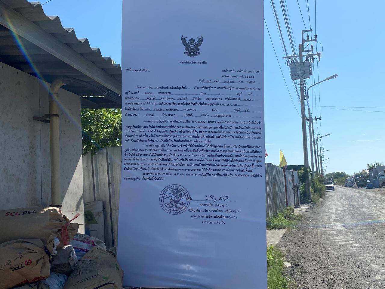 ขณะที่ อบต.บางปลา ได้นำป้ายมาติดประกาศให้ระงับการขุดดิน ในบ่อดินที่เกิดเหตุ เป็นเหตุฉุกเฉินตาม พ.ร.บ.การขุดดินและถมดิน พ.ศ.2543 มาตรา 31 ขณะที่ทางอำเภอบางพลี ได้นำป้ายมาปิดประกาศยังสถานที่เกิดเหตุ กำหนดให้เป็นพื้นที่อันตราย ห้ามบุคคลใด ๆ เข้าไปหรือยู่อาศัยในพื้นที่บริเวณที่เกิดเหตุเป็นระยะทาง 133 เมตร และจากสามแยกถนนคอนกรีตเสริมเหล็กไปทางทิศตะวันตกระยะทาง 136 เมตร