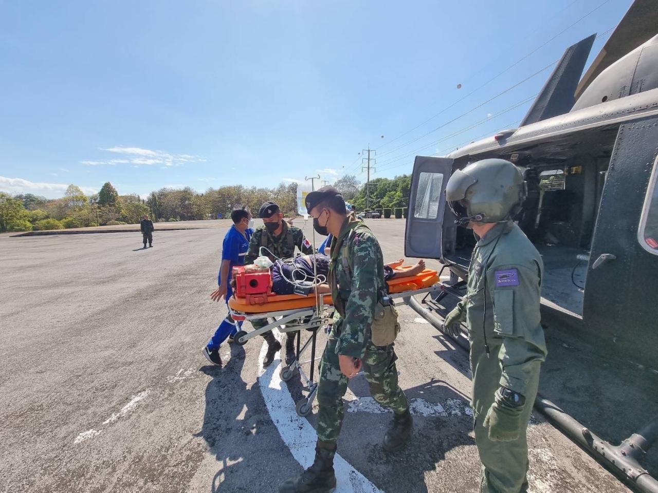 ต่อจากนั้น พล.ต.บรรยง สั่งการให้ ชปบ.ทบ.กกล.สุรสีห์ จัดอากาศยาน ฮ.ท.212 (เบลล์ 212) จำนวน 1 เครื่อง ร่วมกับทีมแพทย์ฉุกเฉิน Sky Doctor โรงพยาบาลทองผาภูมิ บินไปรับผู้ป่วยจากฐานปฏิบัติการ ตชด.134 ต.ไล่โว่ อ.สังขละบุรี จ.กาญจนบุรี ในเขตรักษาพันธุ์ทุ่งใหญ่นเรศวร มายังเขื่อนวชิราลงกรณ และส่งตัวเข้ารับการรักษาต่อ ณ รพ.ทองผาภูมิ อ.ทองผาภูมิ จ.กาญจนบุรี เนื่องจากอาการสาหัส จึงนำส่งต่อ รพ.พหลพลพยุหเสนา เพื่อทำการรักษาต่อไป.