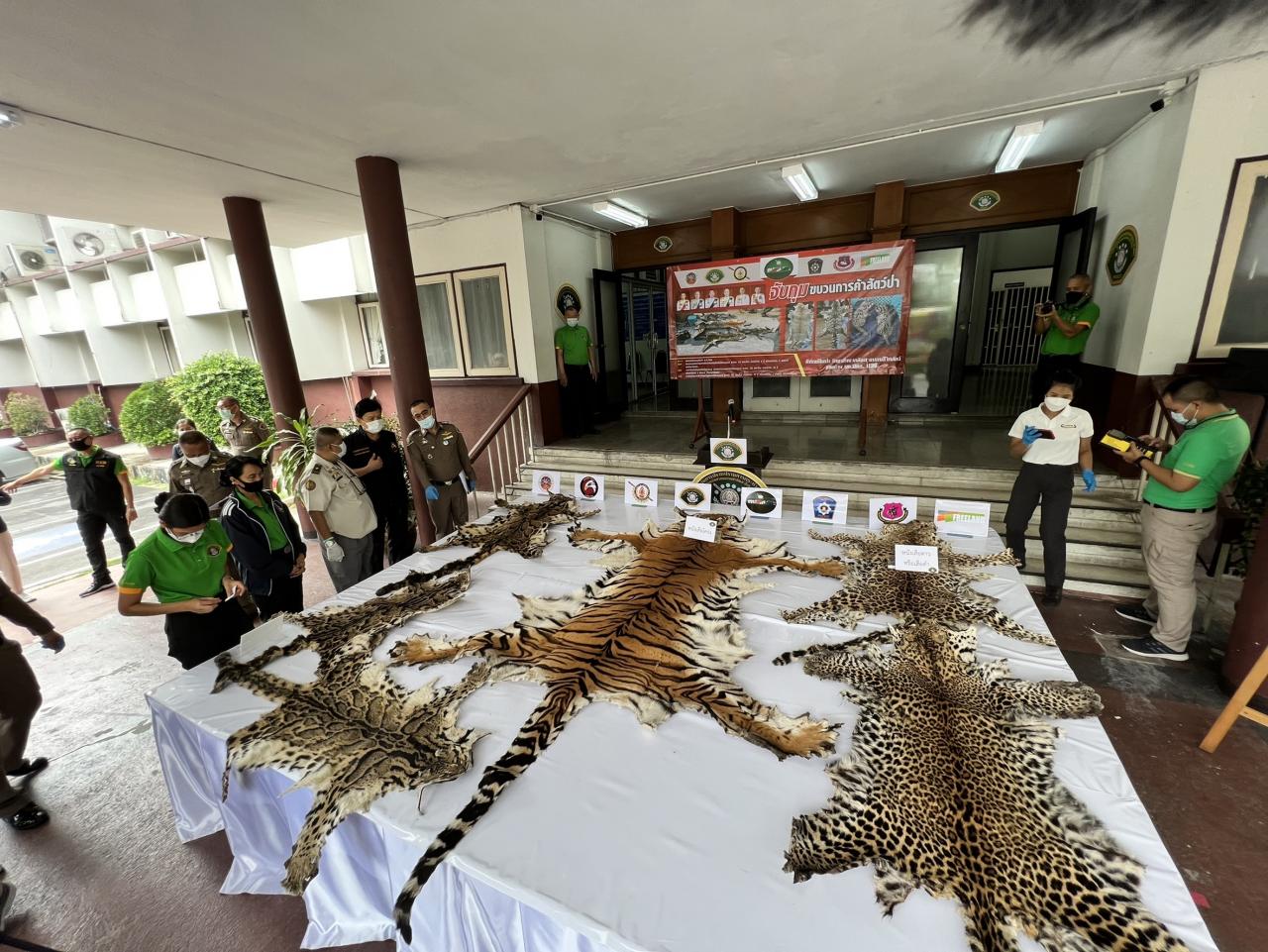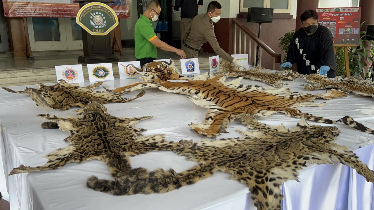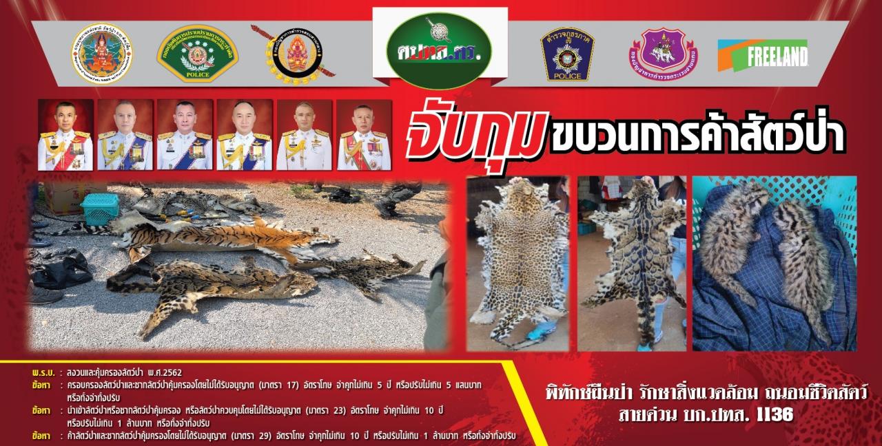 โดยเมื่อวันที่ 20 ม.ค. 65 เจ้าหน้าที่ ศปทส.ตร. ได้ทำการสืบสวนหาข่าวสืบทราบว่า ที่หมู่บ้านซองกาเลีย ตำบลหนองลู อำเภอสังขละบุรี จังหวัดกาญจนบุรี มีการนำหนังเสือและชิ้นส่วนของสัตว์ป่าอื่นๆ จากประเทศเพื่อนบ้านมาเก็บไว้เพื่อจำหน่ายให้กับนายทุน จึงได้วางแผนให้สายลับทำการติดต่อเพื่อขอซื้อสัตว์ป่าและซากของสัตว์ป่า จนกระทั่งต่อมาเมื่อวันที่ 15 ก.พ. 65 สายลับได้ทำการโอนเงินเข้าบัญชีจำนวน 20,000 บาท และนัดหมายรับสินค้าที่สุกัญญา รีสอร์ท ตำบลหนองลู อำเภอสังขละบุรี จังหวัดกาญจนบุรี จึงเข้าไปทำการตรวจสอบที่รีสอร์ตดังกล่าว พบผู้ต้องหาพร้อมของกลางซึ่งไม่ได้รับอนุญาตแต่อย่างใด จึงทำการจับกุมพร้อมของกลางนำส่งพนักงานสอบสวน สภ.สังขละบุรี ดำเนินคดีตามกฎหมายต่อไป