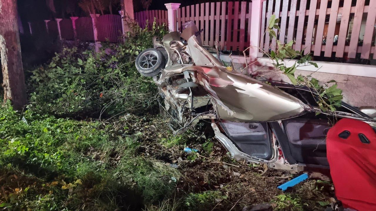 เมื่อค่ำวานนี้ (22 ก.พ.65) ร.ต.อ.หัทยา แก้วชูศรี รองสารวัตรสอบสวน สภ.บ้านแพ้ว จ.สมุทรสาคร พร้อมด้วยเจ้าหน้าที่มูลนิธิการกุศลสมุทรสาคร และนายแพทย์ภูมิ จิตเสรี แพทย์เวรจาก รพ. บ้านแพ้ว ไปตรวจสอบเหตุรถเก๋ง หมายเลขทะเบียน กจ 8521 ระยอง พลิกคว่ำกระแทกต้นไม้ข้างทางรถเก๋งแหลกเป็นชิ้นๆ ที่เกิดเหตุบนถนนสายสวนส้ม-มหาชัย ม.5 ต.สวนส้ม อ.บ้านแพ้ว ส่งผลให้มีผู้เสียชีวิต 1 ราย คือนายโยธิน พุทธา อายุ 47 ปี ชาวบ้าน ซ.เลียบคลองสอง 25 แขวงสามวาตะวันตก เขตคลองสามวา กรุงเทพฯ และมีผู้บาดเจ็บเป็นเด็กผู้หญิงอายุประมาณ 8 ขวบได้รับบาดเจ็บเป็นแผลถลอกที่มือซ้ายเล็กน้อย