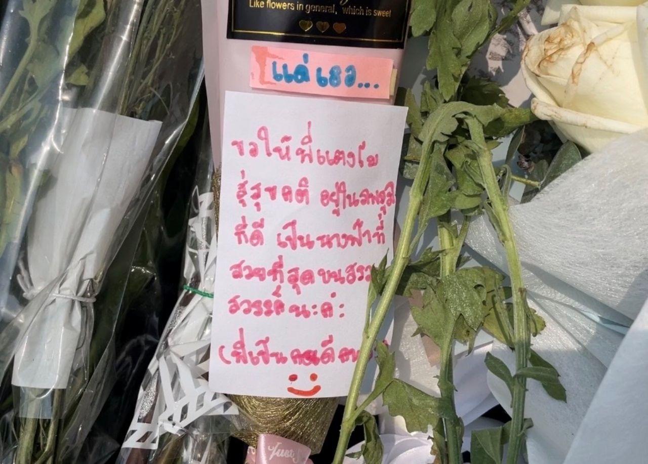 ทั้งนี้ น.ส.ภิญญาพัชญ์ หรือ ปุย แฟนคลับดาราสาว กล่าวว่า เดินทางมาแฟนหนุ่มจากย่านบางซื่อ โดยเป็นแฟนคลับแตงโม นิดา มานานแล้วตั้งแต่เริ่มแสดงละครเรื่องแรก ทันทีที่ทราบข่าวว่าแตงโมพลัดตกน้ำ กระทั่งทีมกู้ภัยออกค้นหาจนพบร่าง รู้สึกตกใจมาก จึงตั้งใจชวนกันเดินทางมาเพื่อร่วมไว้อาลัย.