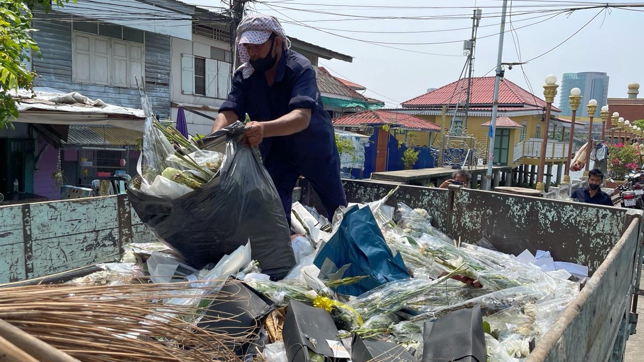 ต่อมาเวลา 10.00 น. นายอำนาจ สอนหมวก ผอ.สำนักงานเจ้าท่าภูมิภาคสาขานนทบุรี พร้อมด้วย นายวรวุฒิ ศรีนนท์ สมาชิกสภาเทศบาลนครนนทบุรีเขต 1 นายสมัชญ์ จรเสมอ สมาชิกสภาเทศบาลนครนนทบุรีเขต 1 และนางบุบผา ขาวสิริ หัวหน้าฝ่ายบริการและสิ่งแวดล้อม เทศบาลนครนนทบุรี นำเจ้าหน้าที่เดินทางมาที่ท่าเรือพิบูลสงคราม 1 โดยนายอำนาจกล่าวว่า วันนี้เจ้าท่าและทางเทศบาลนครนนทบุรีจะให้เจ้าหน้าที่เคลื่อนย้ายเก็บช่อดอกไม้ที่อยู่บนโป๊ะเทียบเรือออกทั้งหมด โดยจะคัดแยกดอกไม้นับพันช่อที่วางอยู่ เฉพาะช่อดอกไม้ที่เหี่ยวแห้งนำไปทิ้ง ส่วนช่อดอกไม้ที่ยังสดอยู่จะย้ายนำมาไว้บนศาลาท่าน้ำเพื่อความเป็นระเบียบเรียบร้อย ไม่ได้นำไปทิ้งทั้งหมด ส่วนกลุ่มแฟนคลับที่รักและอยากมาวางดอกไม้เพื่อแสดงความอาลัยยังสามารถเดินทางมาวางได้เป็นปกติ เป็นการจัดระเบียบเพื่อให้เกิดความเรียบร้อยเท่านั้น เนื่องจากโป๊ะท่าเทียบเรือมีประชาชนบางส่วนใช้ลงเรือเดินทางข้ามฟาก ถ้าปล่อยทิ้งไว้ปริมาณช่อดอกไม้ที่มีแฟนคลับนำมาวางในแต่ละวันจะเพิ่มมากขึ้นเรื่อยๆ จนเต็มพื้นโป๊ะ ทำให้กีดขวางทางเดิน อาจเกิดเป็นอันตรายกับผู้โดยสารที่ลงเรือและต่อตัวผู้ที่มาวางดอกไม้เอง ซึ่งเจ้าหน้าที่จะนำป้ายมาติดตั้งกำหนดจุดบอกให้ประชาชนและแฟนคลับนำมาวางบนศาลาเพื่อความปลอดภัย.