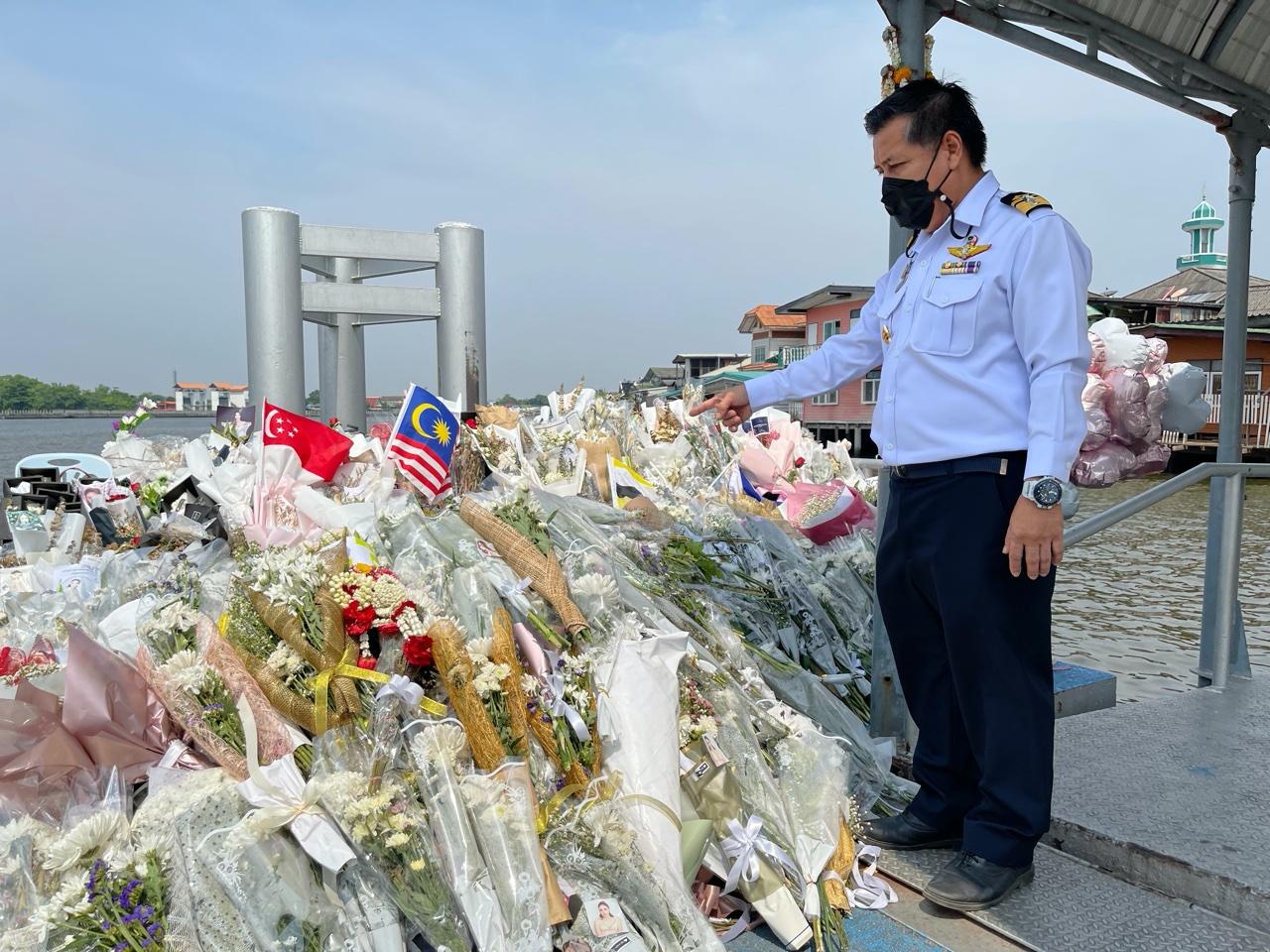 ด้านนายสุรินทร์ สะและสกุล อายุ 67 ปี ประธานชุมชนพิบูลสงคราม 1 เดินทางมาที่ท่าเรือพิบูลย์สงคราม 1 กล่าวว่า ช่อดอกไม้ที่กลุ่มแฟนคลับและประชาชนที่นำมาวางบนโป๊ะท่าเทียบเรือ เพื่อแสดงออกถึงความอาลัยต่อดาราสาวผู้ล่วงลับนั้น ส่วนตัวเป็นห่วงเรื่องความสะอาด อีกส่วนนั้นยังคงมีพี่น้องประชาชนและแฟนคลับยังมีความรักความอาลัย และก็ถ่ายภาพความทรงจำอันดีเป็นที่ระลึก ไม่เพียงแต่คนในประเทศเท่านั้น รวมทั้งต่างประเทศด้วย เนื่องจากดาราสาวผู้เสียชีวิตมีคนรักเป็นจำนวนมาก
