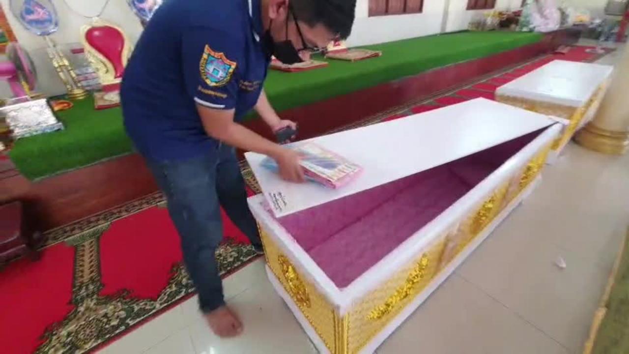 ขณะเดียวกัน น.ส.วรรณวิสา พิทักษ์วงษ์ หัวหน้าบ้านพักเด็กและครอบครัว จ.กาญจนบุรี ได้สั่งการให้เจ้าหน้าที่บ้านพักเด็กกาญจนบุรีเดินทางลงพื้นที่ที่จัดงานศพสองแม่ลูกกินยาตาย ที่ศาลาธรรมสังเวช วัดหัวหิน ต.ท่ามะขาม อ.เมืองกาญจนบุรี พบญาติผู้ตายกำลังจัดเตรียมพิธีรดน้ำศพซึ่งจะเริ่มพิธีในเวลา 16.00 น. โดยชาวบ้านที่ร่วมงานได้ขอดูเลขฝาโลงทั้ง 2 โลงพบว่า โลงที่จัดเตรียมไว้ใส่ศพแม่ มีเลข 194 ส่วนอีกโลงเลขฝาโลงของลูกสาว เลข 875