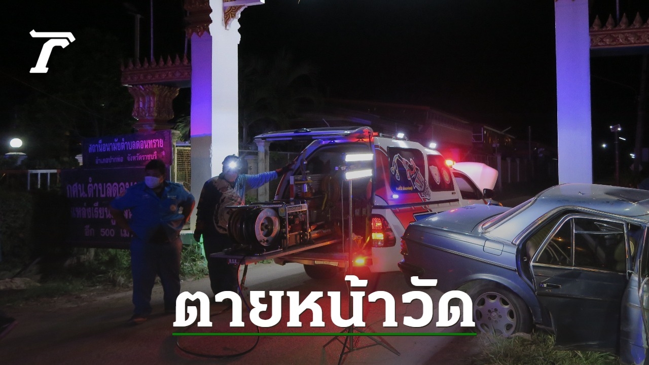 หนุ่มใหญ่ควบเบนซ์ พุ่งลงข้างทาง-ชนเสาไฟ ถูกคอนโซลอัดร่างตายสนิทคารถ ตำรวจคาดอาจเสียหลัก-คุมรถไม่อยู่เป็นเหตุชนดับสลด
