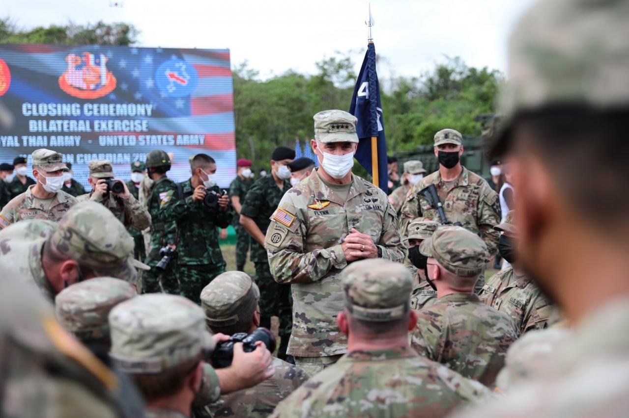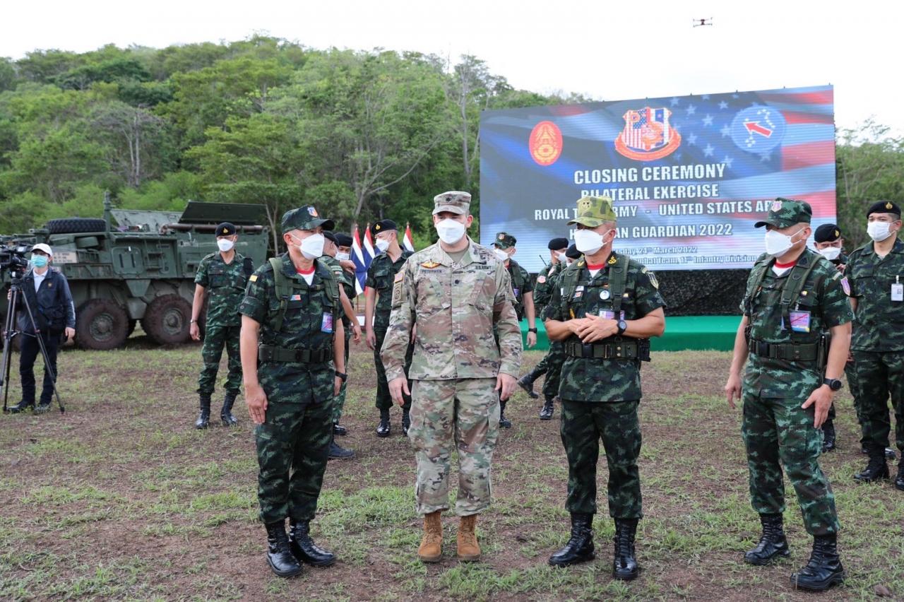 ผบ.ทบ.ไทย - ผบ.กกล.ทบ.สหรัฐฯ ร่วมปิดการฝึกผสม "หนุมานการ์เดียน 2022" ชื่นชมกำลังพลด้วยกระตือรือร้น และตั้งใจในการฝึก นำไปสู่ความร่วมมือที่ยั่งยืน และพร้อมรองรับภัยคุกคามในสถานการณ์โลก พร้อมเยี่ยมการฝึกดำเนินกลยุทธ์ด้วยกระสุนจริงของหน่วยยานเกราะสไตรเกอร์