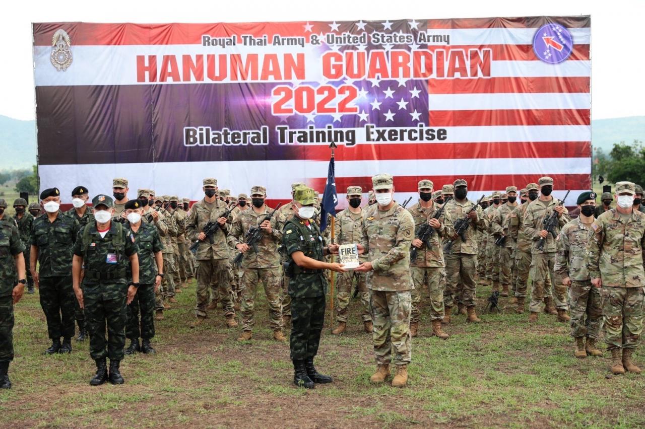 สำหรับการฝึกผสม Hanuman Guardian 2022 ในปีนี้จัดขึ้นในระหว่าง 24 ก.พ.-25 มี.ค. 65 ณ พื้นที่ฝึก จ.ประจวบคีรีขันธ์ และ จ.ลพบุรี ซึ่งประกอบกำลังจาก กองทัพบกไทย และกองกำลังทางบกสหรัฐอเมริกาภาคพื้นแปซิฟิก (USARPAC) มีการแลกเปลี่ยนในหลากหลายรูปแบบ ทั้งการฝึกกระโดดร่มทางยุทธศาสตร์ การรบผสมเหล่า การฝึกแลกเปลี่ยนของหน่วยกำลังรบ หน่วยบิน รวมทั้งหน่วยต่อต้านวัตถุระเบิดและการฝึกแลกเปลี่ยนผู้เชี่ยวชาญ ถือเป็นความร่วมมือและความสำเร็จอันงดงามในการพัฒนาทั้งระดับบุคคลและระดับหน่วยของกองทัพบกไทยและสหรัฐฯ.