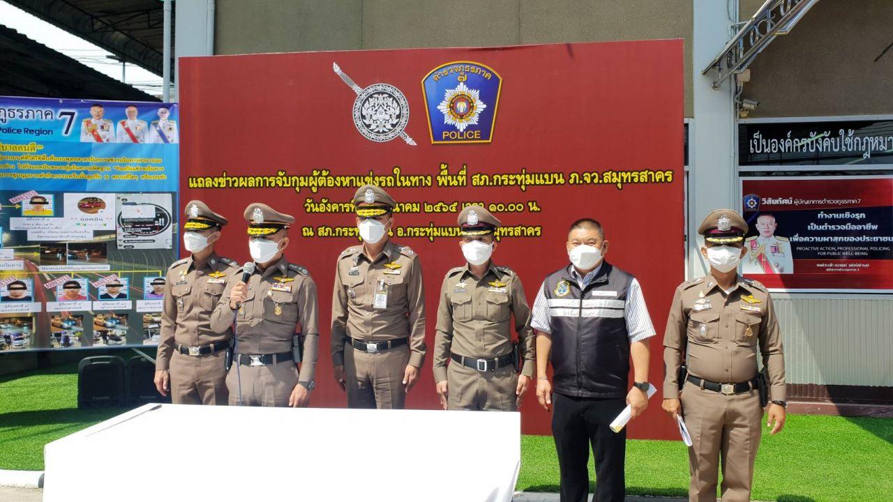 เมื่อเวลา 10.30 น. ของวันที่ 29 มีนาคม 2565 ที่สถานีตำรวจภูธรกระทุ่มแบน อ.กระทุ่มแบน จ.สมุทรสาคร พล.ต.ท.ธนายุตม์ วุฒิจรัสธำรงค์ ผบช.ภ.7 พร้อมด้วย พล.ต.ต.ปรัชญา ประสานสุข รอง ผบช.ภ.7/ผอ.ศปข.ภ.7, พล.ต.ต.อภิชาติ วรรณภักดิ์ ผบก.ภ.จว.สมุทรสาคร พร้อม พ.ต.อ.เสรีฐกาญจน์ จันทร์ด้วง ผกก.สภ.กระทุ่มแบน ร่วมกันแถลงผลการจับกุม กลุ่มวัยรุ่นขับขี่รถยนต์ประลองความเร็วบนถนนพุทธสาคร ในเขตพื้นที่ความรับผิดชอบของ สภ.กระทุ่มแบน จังหวัดสมุทรสาคร ตามที่ปรากฏในคลิปของเพจข่าวดัง “เฮียขับรถ”