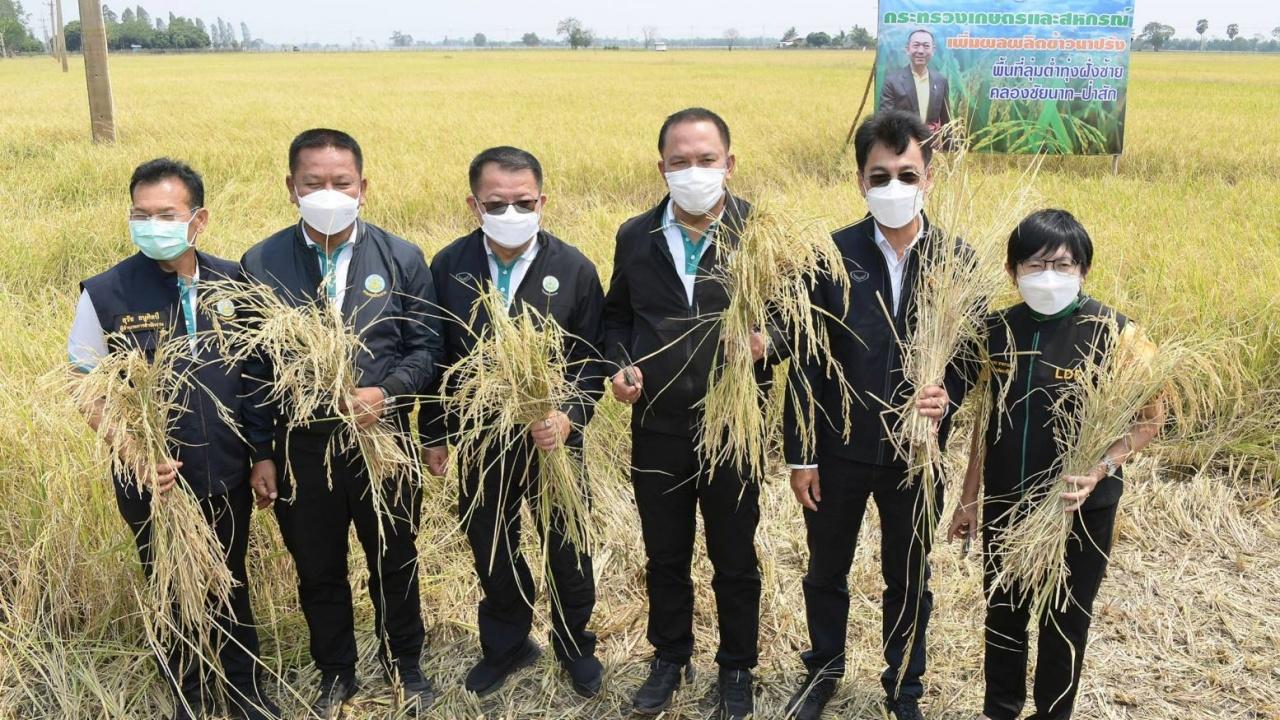 เมื่อวันที่ 7 เม.ย.65 นายเฉลิมชัย ศรีอ่อน รัฐมนตรีว่าการกระทรวงเกษตรและสหกรณ์ ลงพื้นที่เพื่อติดตามสถานการณ์น้ำ และร่วมกิจกรรมเกี่ยวข้าวกับกลุ่มเกษตรกรในพื้นที่ อ.บ้านหมี่ จ.ลพบุรี โดยมี นายประพิศ จันทร์มา อธิบดีกรมชลประทาน ดร.ทวีศักดิ์ ธนเดโชพล รองอธิบดีฝ่ายบำรุงรักษา นายชูชาติ รักจิตร รองอธิบดีฝ่ายก่อสร้าง นายสุรัช ธนูศิลป์ ผู้อำนวยการสำนักงานชลประทานที่ 10 และผู้เกี่ยวข้องเข้าร่วมกิจกรรมดังกล่าวกันอย่างพร้อมเพรียง