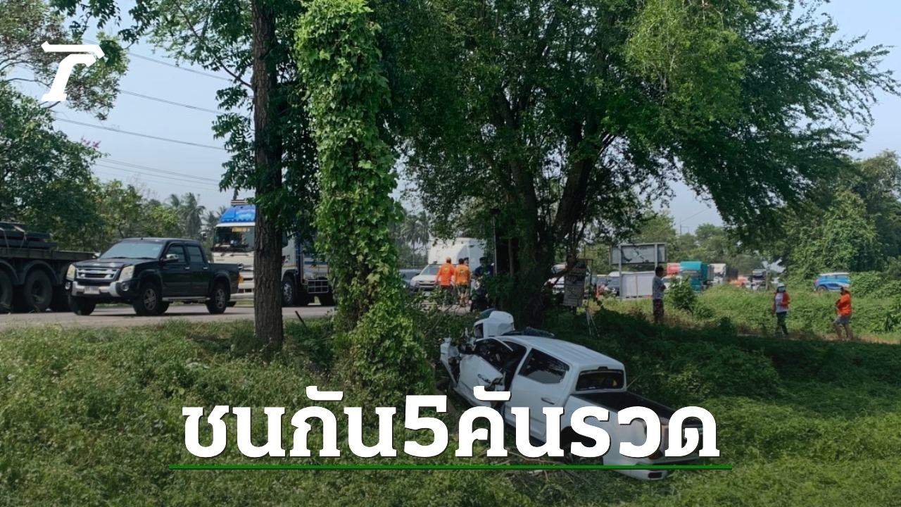 อุบัติเหตุบนถนนเพชรเกษม ช่วง อ.บางสะพาน ประจวบคีรีขันธ์ รถบนถนนหนาแน่นคนเดินทางกลับบ้านในเทศกาลสงกรานต์ มีรถชนกัน 5 คันรวด ทั้งปิกอัพ รถเก๋ง รถบรรทุกโม่ปูน มีผู้บาดเจ็บ