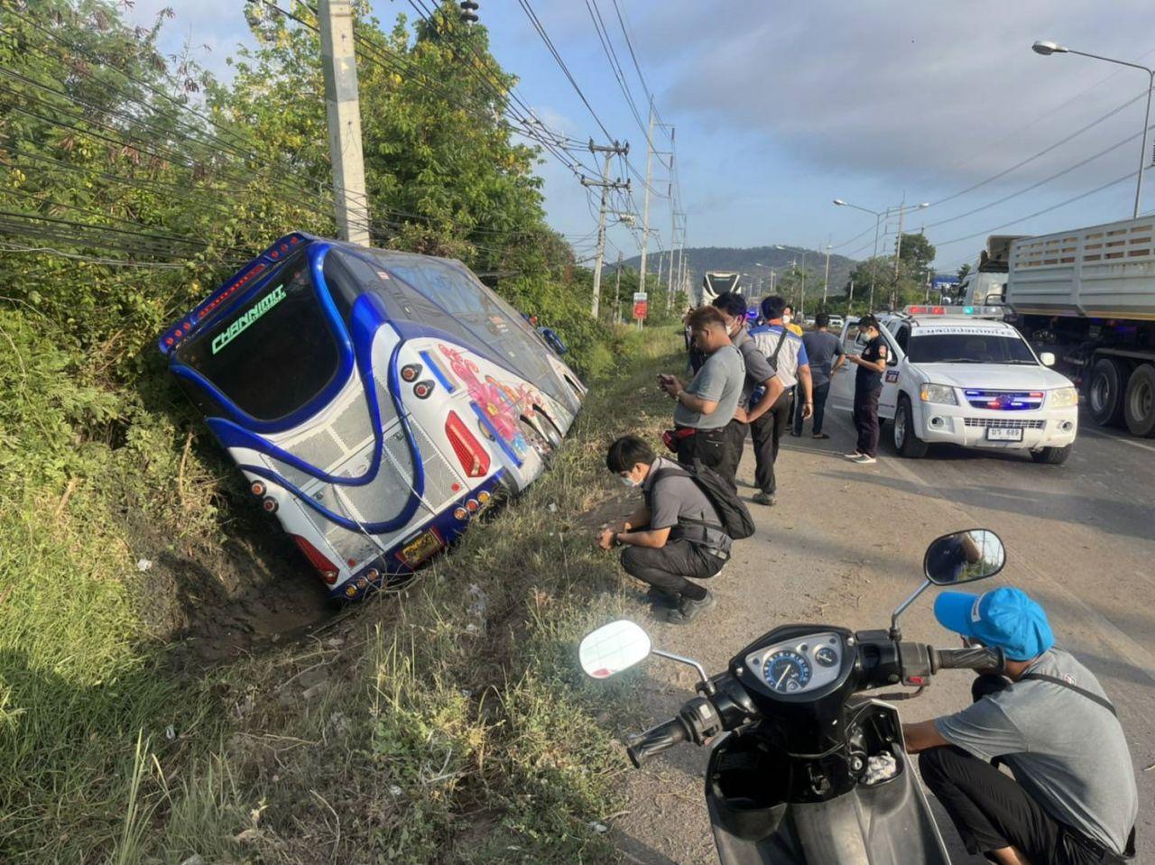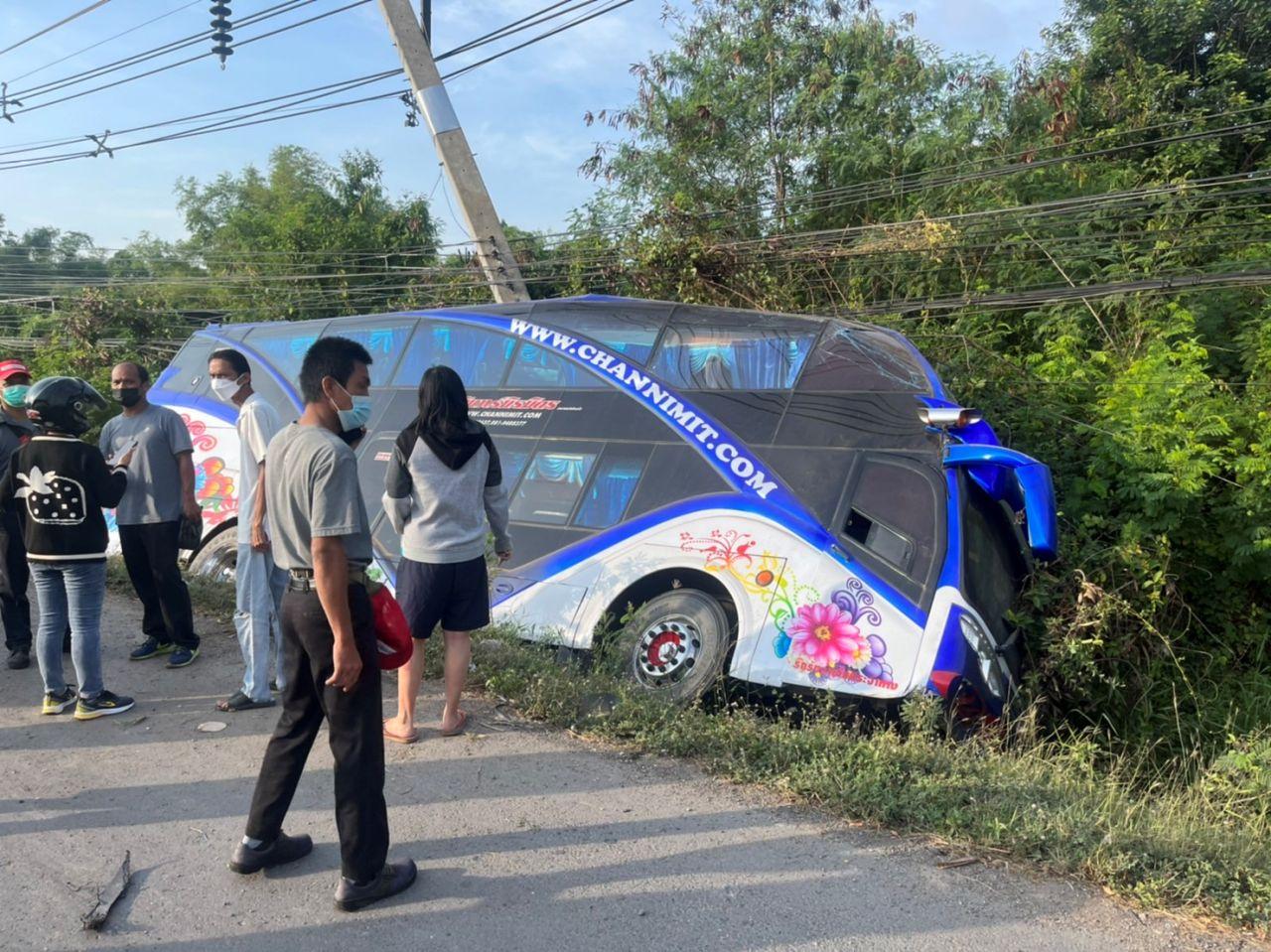 สระบุรีหวิดตายหมู่อีกแล้ว หลังรถบัสแอร์ 2 ชั้นรับส่งพนักงานโรงงาน เกิดเสียหลักชนเสาไฟฟ้า ก่อนลงข้างทางริมถนนสายสุวรรณศร – หินกอง กม.ที่ 95 บาดเจ็บนับสิบราย ตร.เร่งสอบสวนหาสาเหตุต่อไป