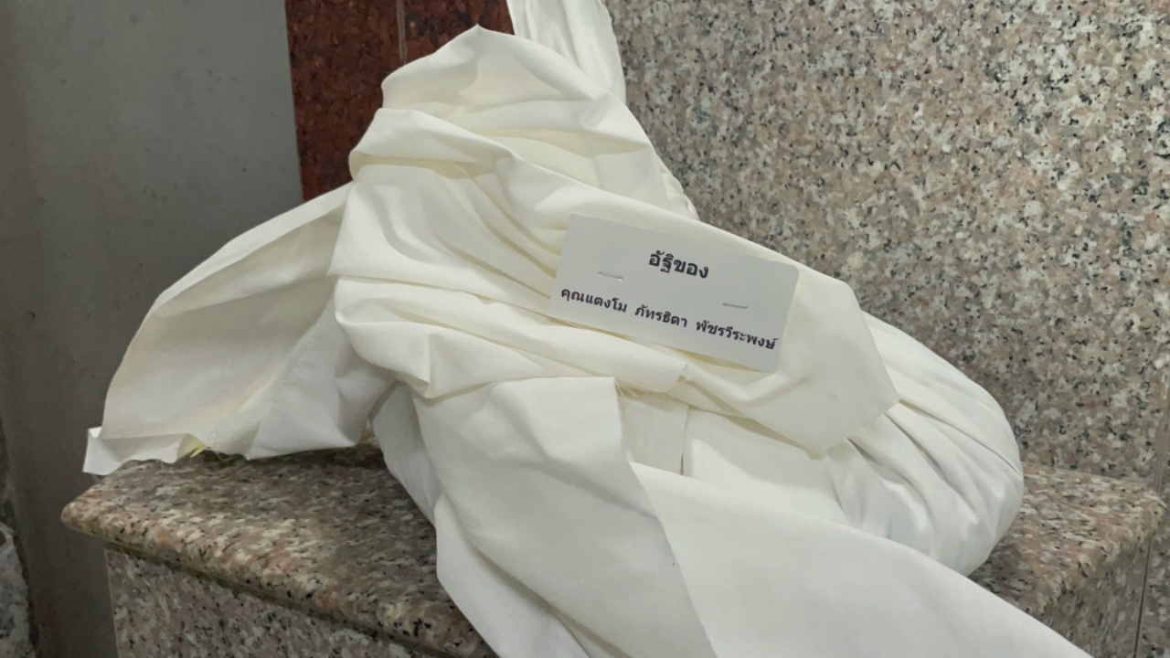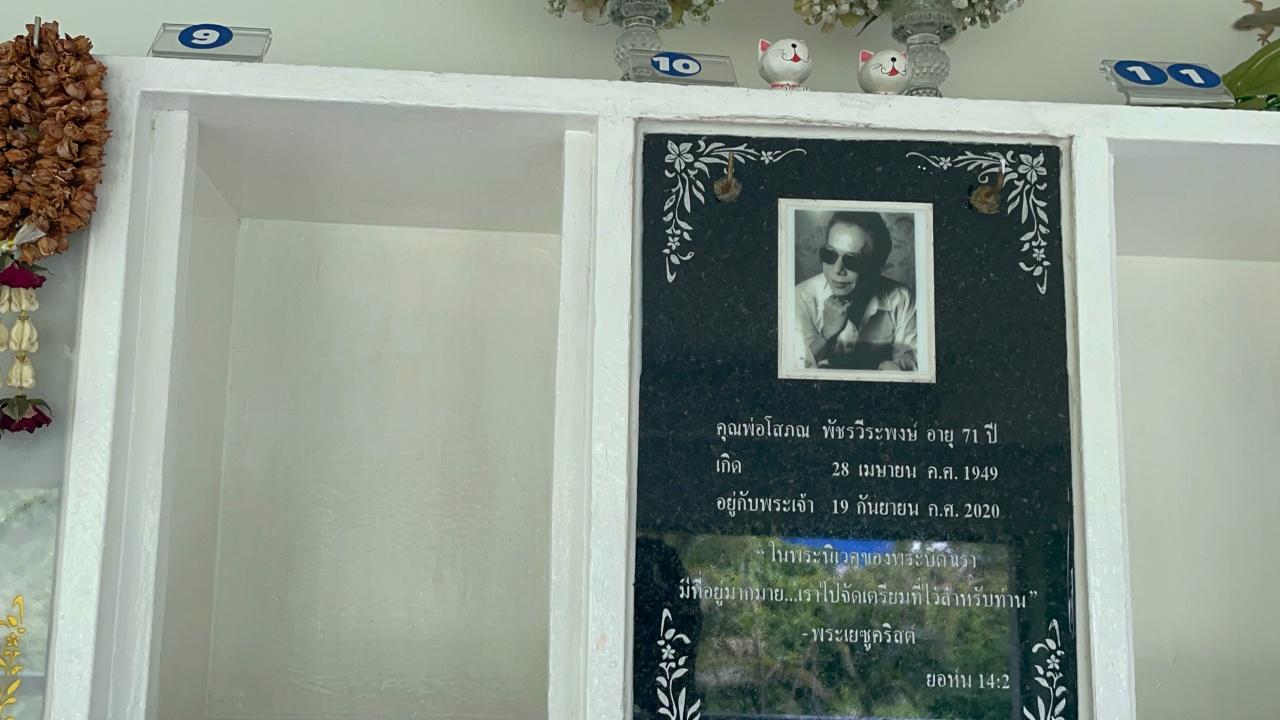คริสตจักรเมธอดิสท์รังสิต คลองสี่ เก็บอัฐิ "แตงโม" แล้ว รอญาติพี่น้องมารับวันเสาร์นี้ ส่วนหนึ่งนำไปลอยอังคาร และอีกส่วนเก็บไว้ในช่องหมายเลข 9 ใกล้กับคุณพ่อโสภณ