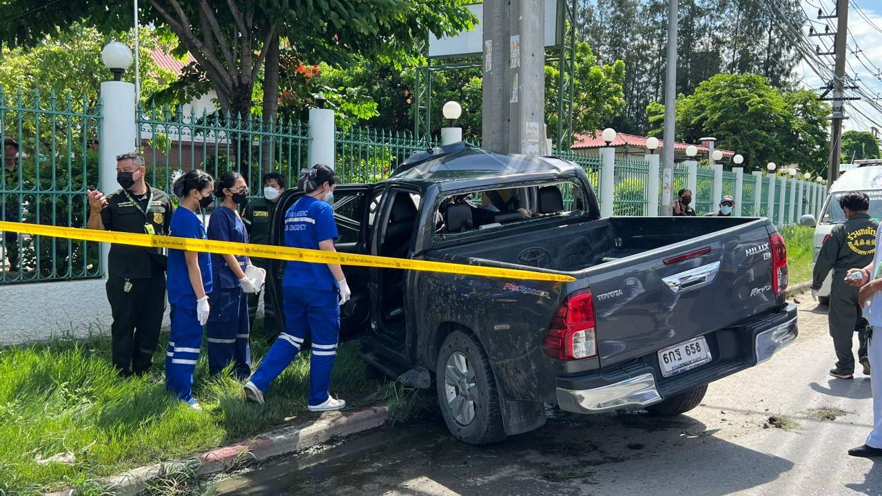 เมื่อเวลา 10.00 น. วันที่ 25 พ.ค. 2565 พ.ต.ท.สุวัฒน์ โพธิ์รี สารวัตรสอบสวน สภ.ปากคลองรังสิต ได้รับแจ้งมีอุบัติเหตุรถกระบะเสียหลักชนเสาไฟฟ้า เป็นเหตุให้มีผู้เสียชีวิตติดภายในยานพาหนะ เหตุเกิดบริเวณหน้าสนามไดร์ฟกอล์ฟ T.S.R.Bangpoon Golf Driving Range ตำบลบางพูน อำเภอเมืองปทุมธานี จังหวัดปทุมธานี หลังรับแจ้งจึงรีบรุดไปตรวจสอบที่เกิดเหตุพร้อมด้วยหน่วยกู้ชีพโรงพยาบาลกรุงสยามเซนต์คาร์ลอส แพทย์จากสถาบันนิติวิทยาศาสตร์ กระทรวงยุติธรรม อาสาสมัครมูลนิธิร่วมกตัญญู และอุปกรณ์ตัด-ถ่าง