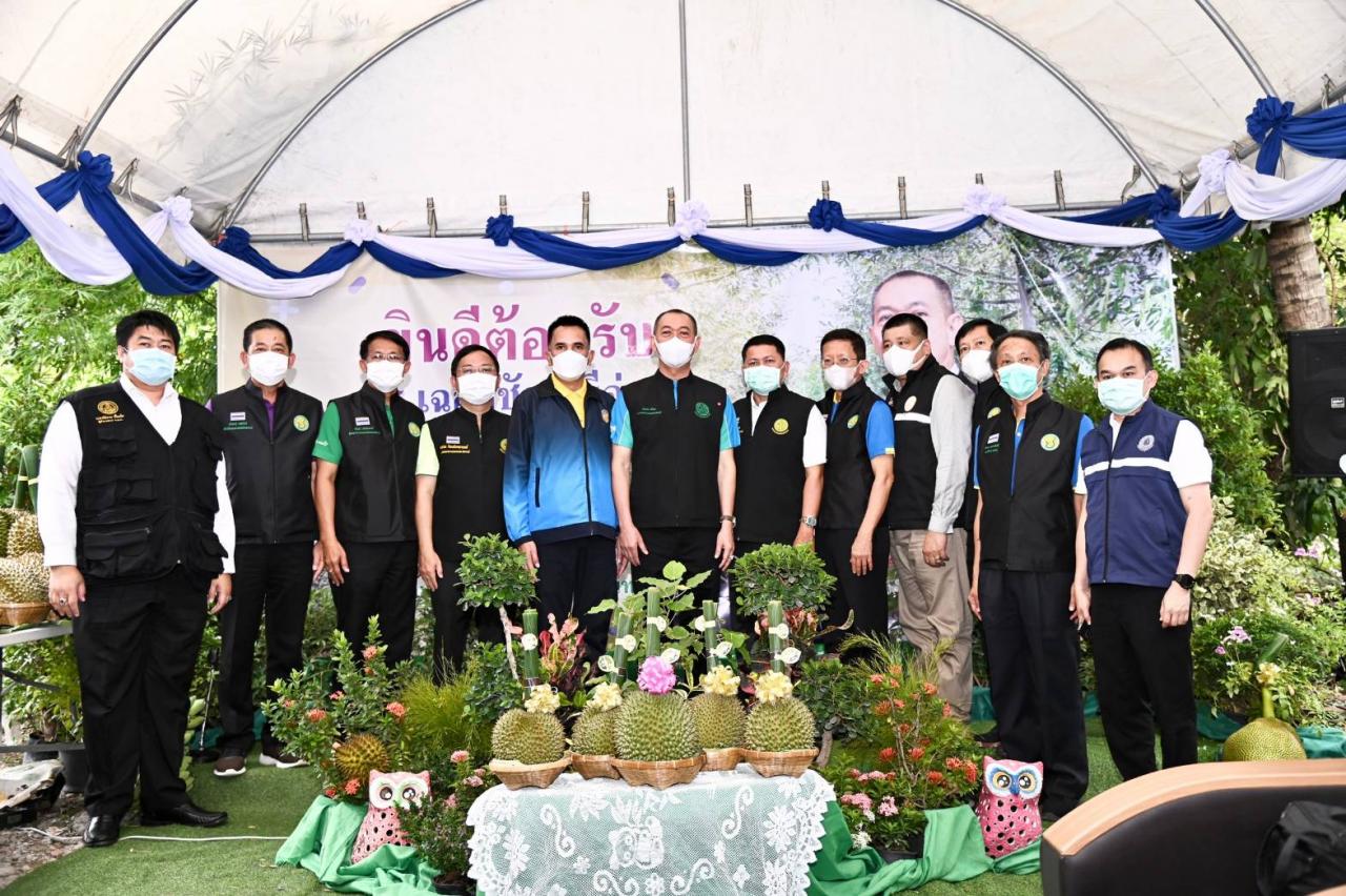 "วันนี้ต้องการมาประชาสัมพันธ์ว่าทุเรียนของไทยมีอยู่หลากหลายพื้นที่ และทุเรียนนนทบุรีเป็นทุเรียนพันธุ์ดั้งเดิมของไทย จึงอยากเชิญชวนให้พี่น้องประชาชนคนไทยมาบริโภคทุเรียน โดยกระทรวงเกษตรฯ จะเข้ามาส่งเสริมให้พื้นที่ จ.นนทบุรี มีการปลูกทุเรียนเพิ่มขึ้น เพราะปัจจุบันมีปริมาณที่ไม่เพียงพอต่อความต้องการ ซึ่งทุเรียนเป็นพืชที่ให้ผลตอบแทนต่อไร่สูงที่สุด โดยถือเป็นผลผลิตทางการเกษตรที่เป็นพืชเศรษฐกิจของประเทศ แม้จะอยู่ในช่วงโควิด-19 แต่มีมูลค่าส่งออกกว่าแสนล้านบาท ซึ่งภาคการเกษตรเป็นภาคที่ช่วยผดุง GDP ของประเทศ จึงอยากให้เกษตรกรภาคภูมิใจที่เป็นส่วนช่วยให้เศรษฐกิจไทยยังคงเดินไปข้างหน้าได้ และเชื่อมั่นว่าภายใน 2-3 ปีข้างหน้า มูลค่าการส่งออกทุเรียนจะสามารถเป็นอันดับ 1 ของประเทศ จึงอยากขอให้เกษตรกรยังคงรักษาคุณภาพและมาตรฐาน เพื่อให้ได้ทุเรียนที่มีคุณภาพออกมาให้ผู้บริโภคทั้งชาวไทยและชาวต่างชาติได้บริโภคกันต่อไป" นายเฉลิมชัย กล่าว