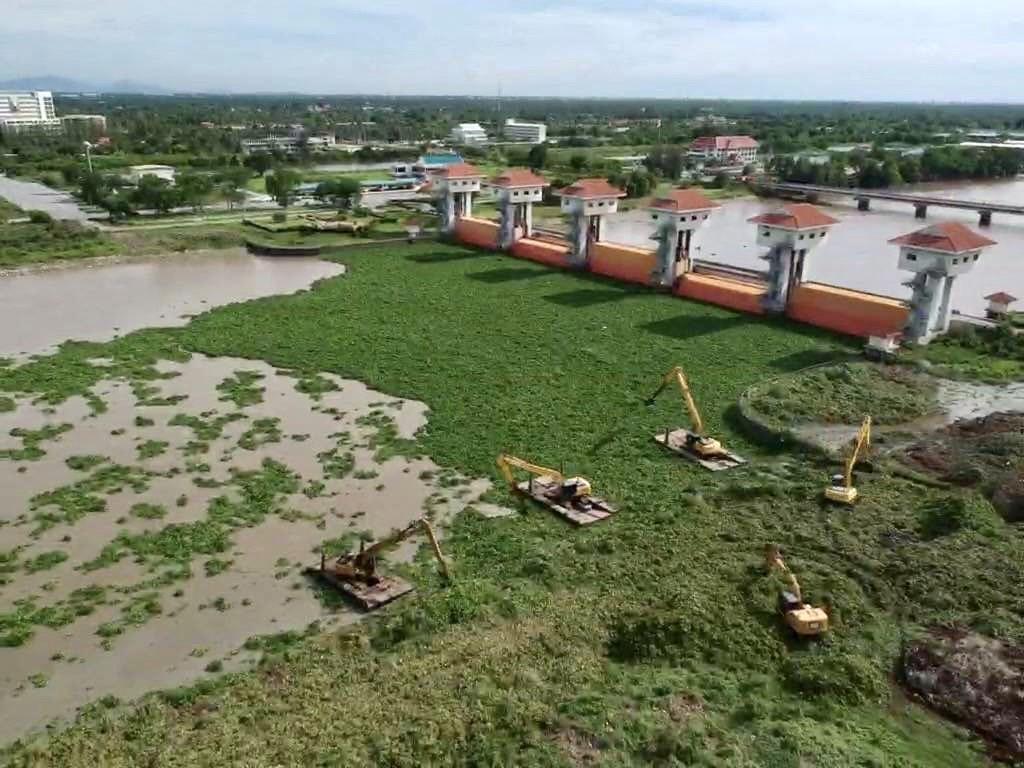 กรมชลประทาน เร่งแก้ปัญหากำจัดผักตบชวา เขื่อนทดน้ำบางปะกง เพื่อเพิ่มประสิทธิภาพการระบายน้ำ เตรียมพร้อมรับมือน้ำหลากในช่วงฤดูฝน