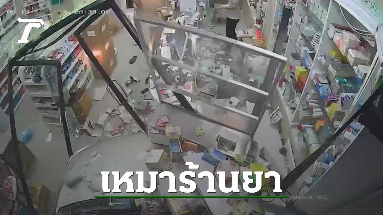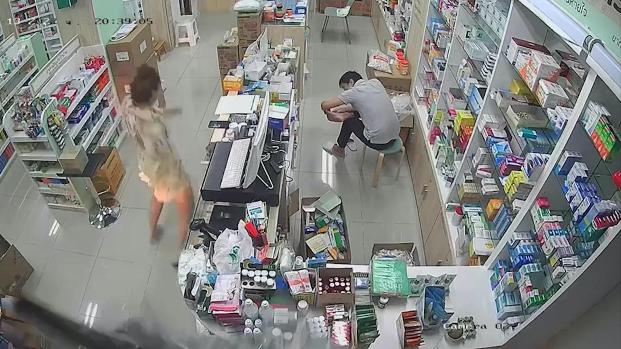 ลูกค้าเป็นหญิงวัยกลางคน ขับรถเก๋งจอดซื้อยา ได้ยาแล้วจะถอยรถกลับ แต่เข้าเกียร์ผิด กลายเป็นเดินหน้า พุ่งชนร้านพังยับ ยังดีรถมาติดอยู่ตรงเคาน์เตอร์ ผัวเมียเจ้าของร้านรอดตายหวุดหวิด
