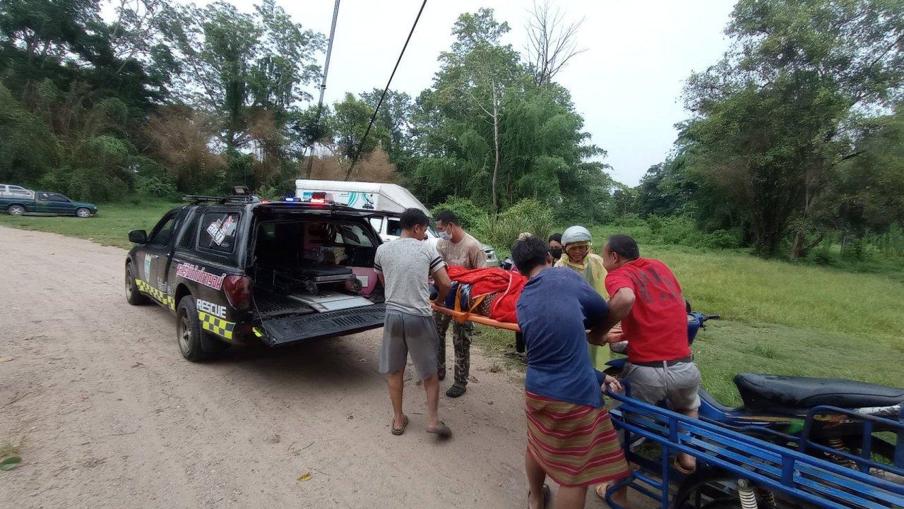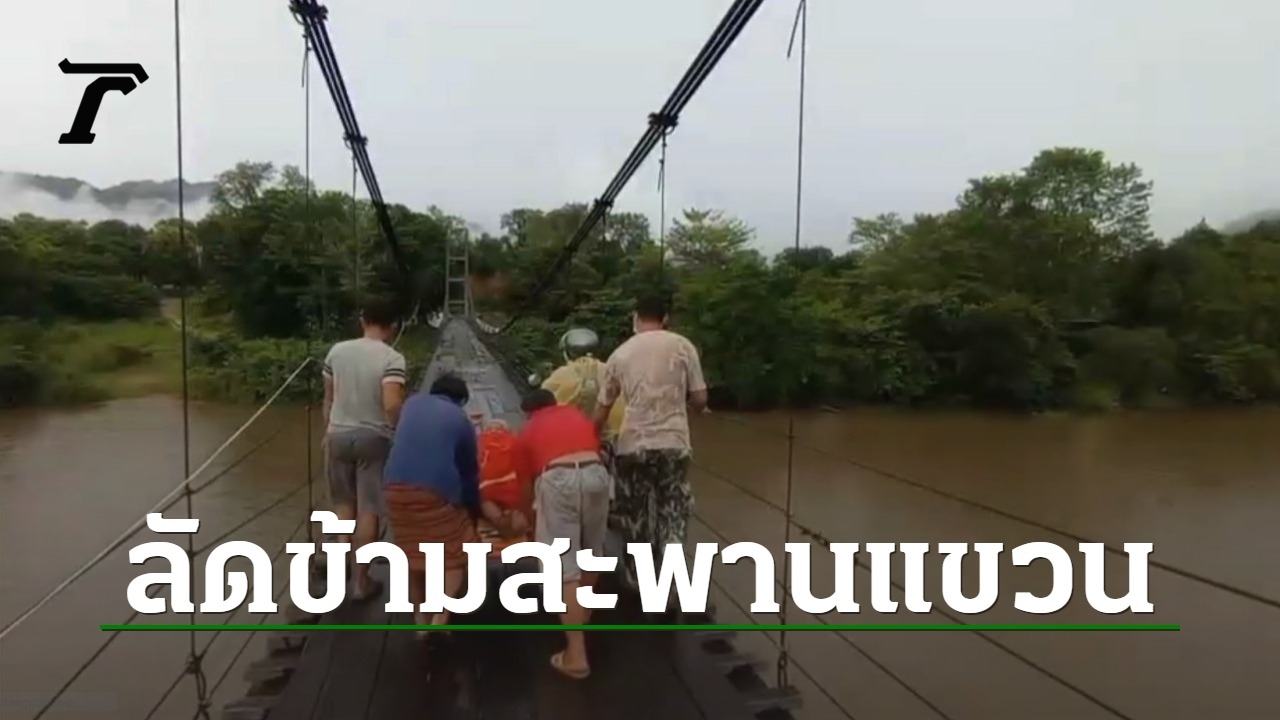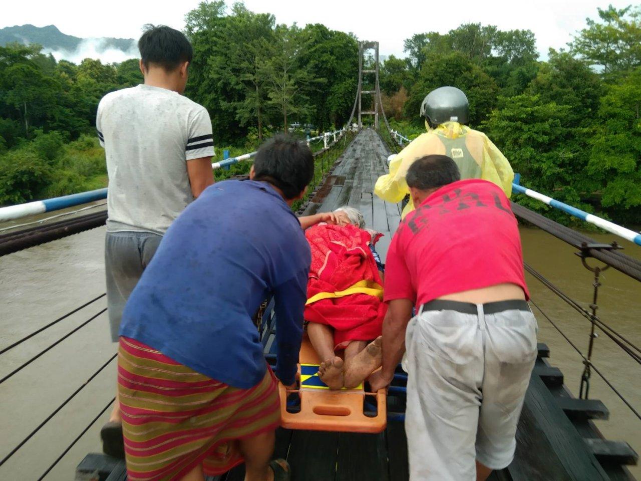 กู้ชีพ-กู้ภัย อ.ไทรโยค กาญจน์ ช่วยยายกะเหรี่ยงวัย 70 ล้มเจ็บขยับตัวไม่ได้ ประเมินนั่งรถไกลจะไม่ไหว ใช้ทางลัดเอายายใส่บอร์ดพาด จยย.พ่วงข้างพาข้ามสะพานแขวนบ้านหาดงิ้ว ถึง รพ.สมเด็จฯ ทันเวลา