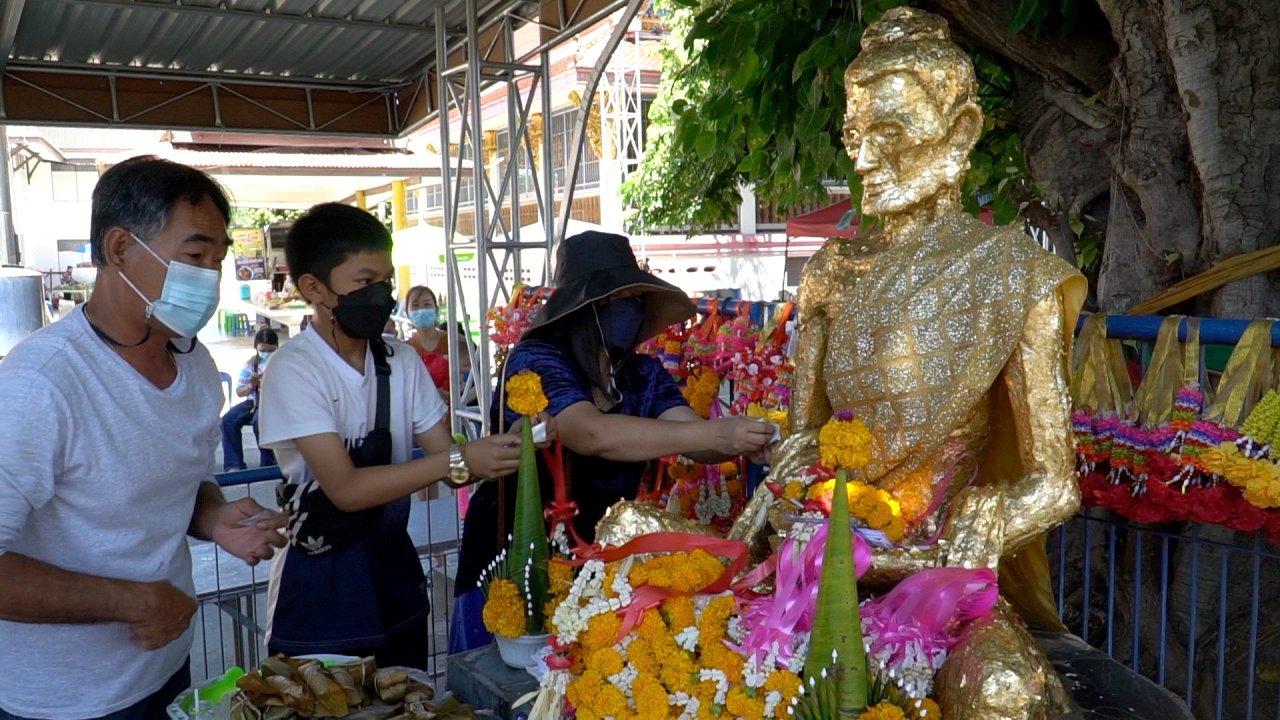 วานนี้ (29 มิ.ย. 2565) ผู้สื่อข่าวรายงานว่า บรรยากาศภายในวัดหลวงพ่อผอม หรือวัดโพธาราม ต.แพรกศรีราชา อ.สรรคบุรี จ.ชัยนาท เต็มไปด้วยความครึกครื้น ภายหลังจากที่ทางรัฐบาลเริ่มผ่อนคลายมาตรการโควิด-19 ให้แก้บนด้วยกลองยาว ทำให้บรรดาลูกหลานพาบิดามารดา ญาติมิตร มาขอพรให้หายป่วยกันอย่างไม่ขาดสาย ทั้งนี้เสียงกลองยาวก็ตียาวเป็นชั่วโมงๆ แทบไม่ได้พัก เพราะมีคนมาต่อคิวแก้บนอย่างต่อเนื่อง