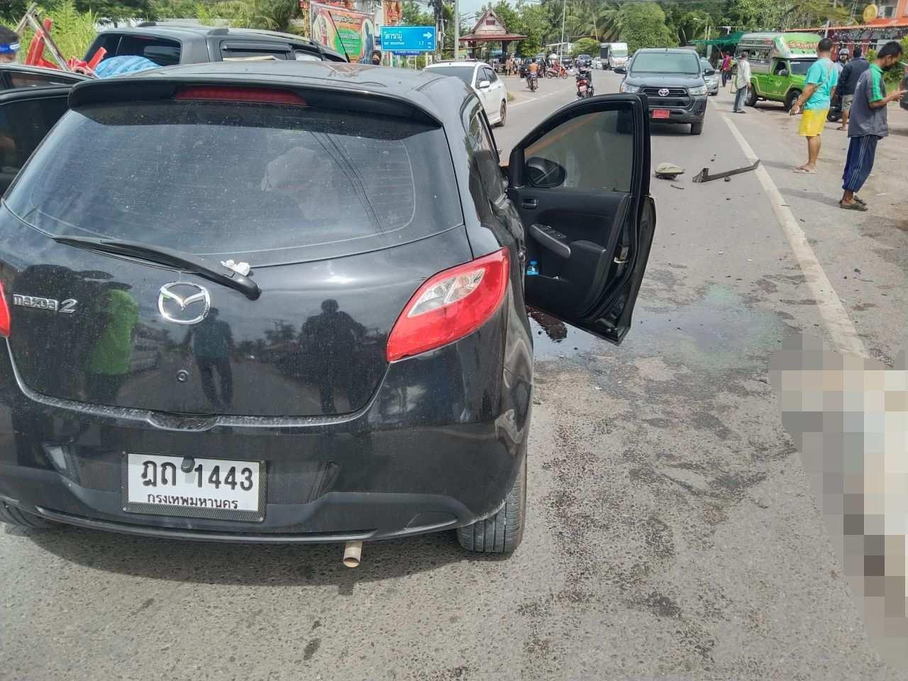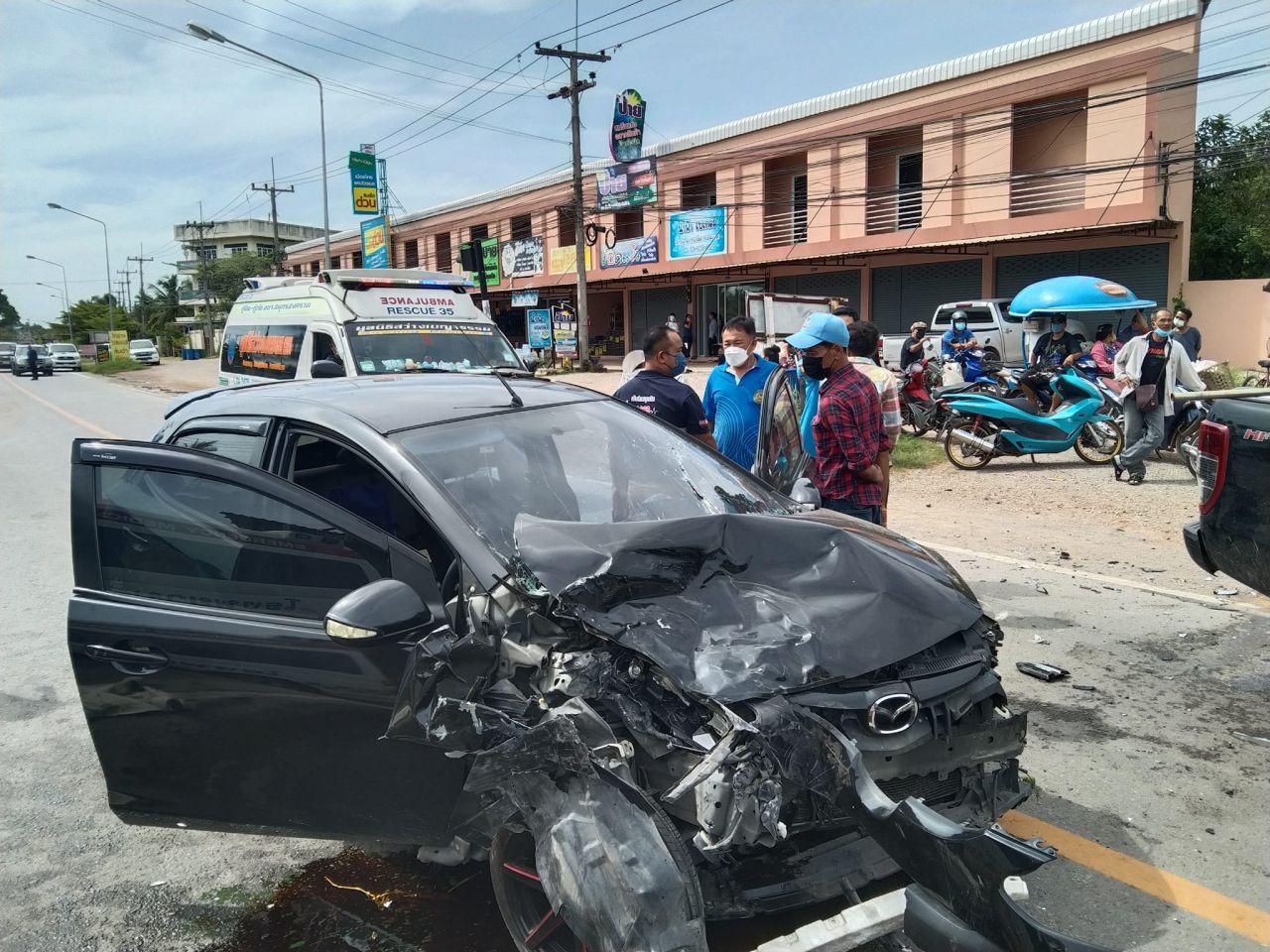 วานนี้ (1 ก.ค. 65) ร.ต.อ.คมสันต์ พรหมศิริ รอง สว.สอบสวน สภ.อัมพวา จ.สมุทรสงคราม จากหน่วยกู้ภัยมูลนิธิสว่างเบญจธรรมว่า เกิดอุบัติเหตุ บนถนนสายสมุทรสงคราม-ปากท่อสายเก่า หมู่ 7 ต.ปลายโพงพาง พบรถเก๋งมาสด้า 2 สีดำ ทะเบียน ฏถ-1443 กทม. สภาพด้านฝั่งคนขับถูกชนจนยุบ ภายในรถพบศพ น.ส.กัญญาณัฐ ศิริโชค อายุ 25 ปี และเป็นพยาบาลวิชาชีพ แผนกอุบัติเหตุฉุกเฉิน ร.พ.สมเด็จพระพุทธเลิศหล้าสมุทรสงคราม เสียชีวิตบริเวณที่นั่งคนขับ ส่วนคู่กรณีเป็นรถกระบะฟอร์ดเรนเจอร์ สีดำ ทะเบียน 5กล-4620 กทม. มี นายอำนวย สงเคราะห์สุข อายุ 60 ปี เป็นคนขับ หน้ารถฝั่งคนขับพังยุบได้รับล้อหน้าด้านขวายางแตก พังเสียหาย ได้รับบาดเจ็บ