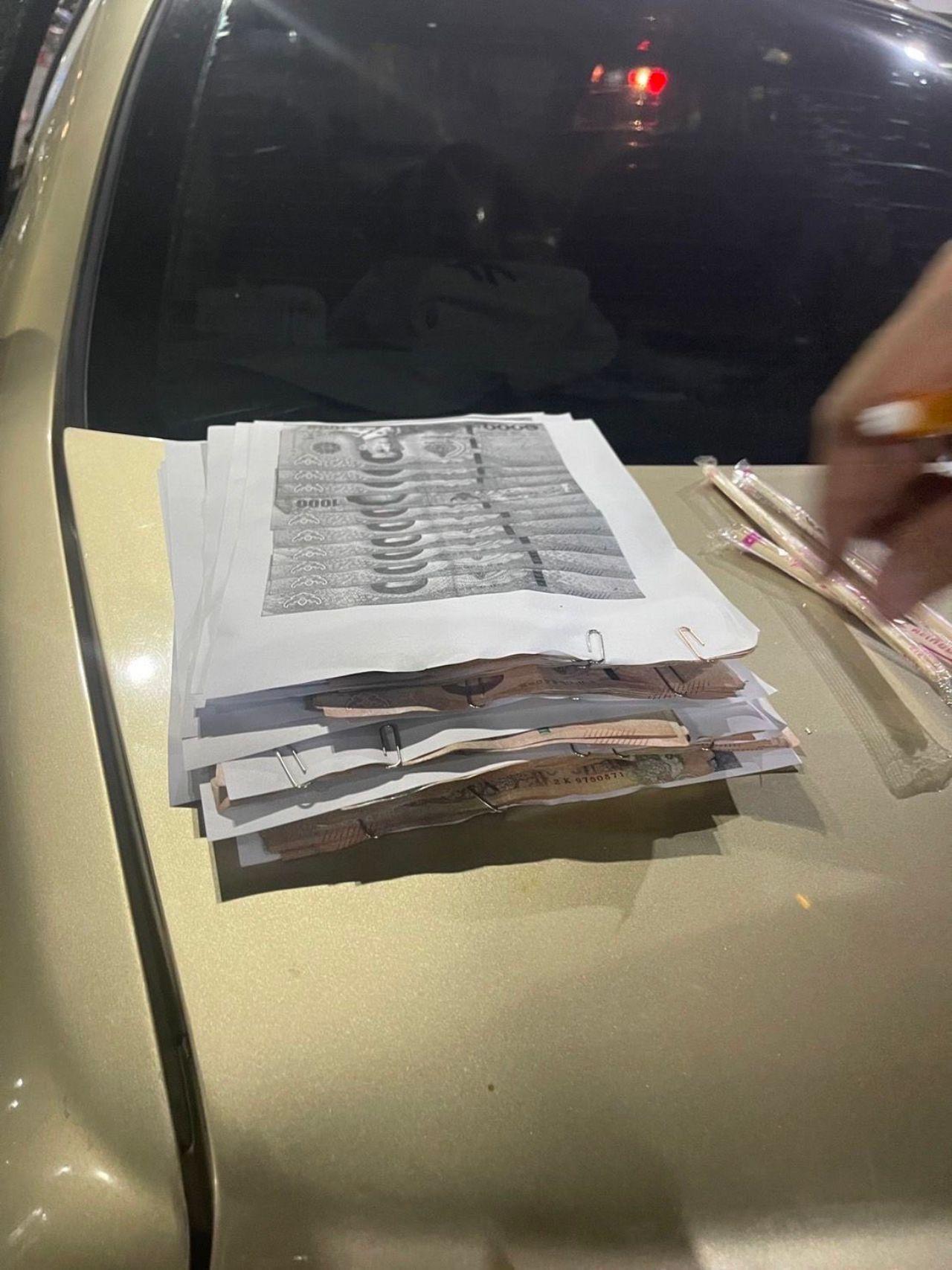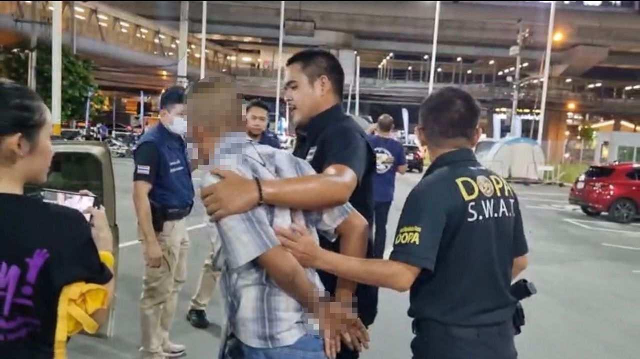 ปลัดกระทรวงมหาดไทย กล่าวต่อว่า เจ้าหน้าที่สามารถจับกุมกลุ่มชายดังกล่าวได้ที่ลานจอดรถร้านดีเทคลอน ตรงข้ามห้างสรรพสินค้าเซ็นทรัล พลาซ่า เวสต์เกต อำเภอบางใหญ่ จังหวัดนนทบุรี โดยจากการตรวจสอบพบว่า 1 ในผู้ถูกจับกุม คือ เจ้าหน้าที่ตำรวจ สังกัดกองบัญชาการตำรวจท่องเที่ยว คือ ด.ต.ภูวเมศฐ์ หิรัญวงศ์วราดล และอีก 1 ราย คือ นายมานัส สุขสม ภายหลังการจับกุมตรวจสอบพบธนบัตรที่ใช้ในการล่อจับภายในรถยนต์ของนายมานัส สุขสม เป็นเงินสดจำนวน 100,000 บาท