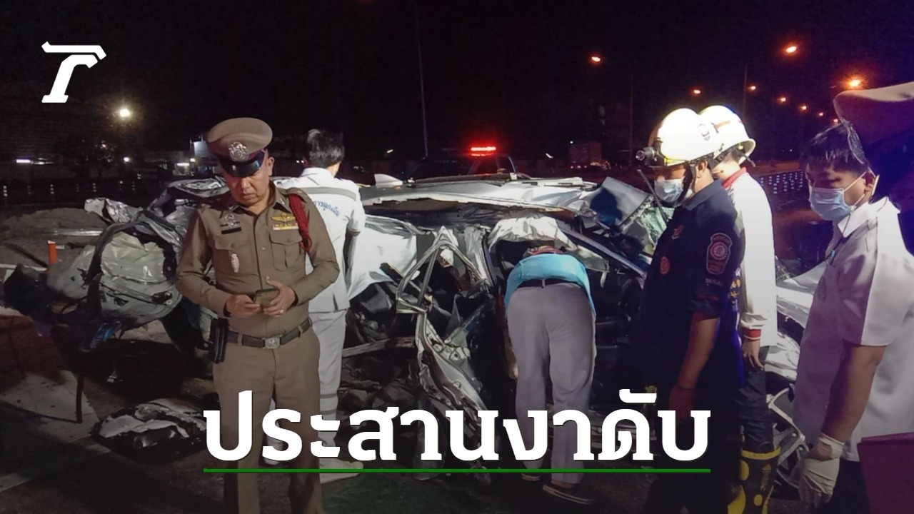 เก๋งพุ่งข้ามเลนประสานงากระบะ สลดสาวคนขับเป็นศพคาซาก ด้านคนขับกระบะเผย กำลังจะไปส่งกั้งที่ลาดกระบัง สังเกตเห็นเก๋งวิ่งขึ้นเกาะกลางด้วยความเร็วก่อนชนกัน