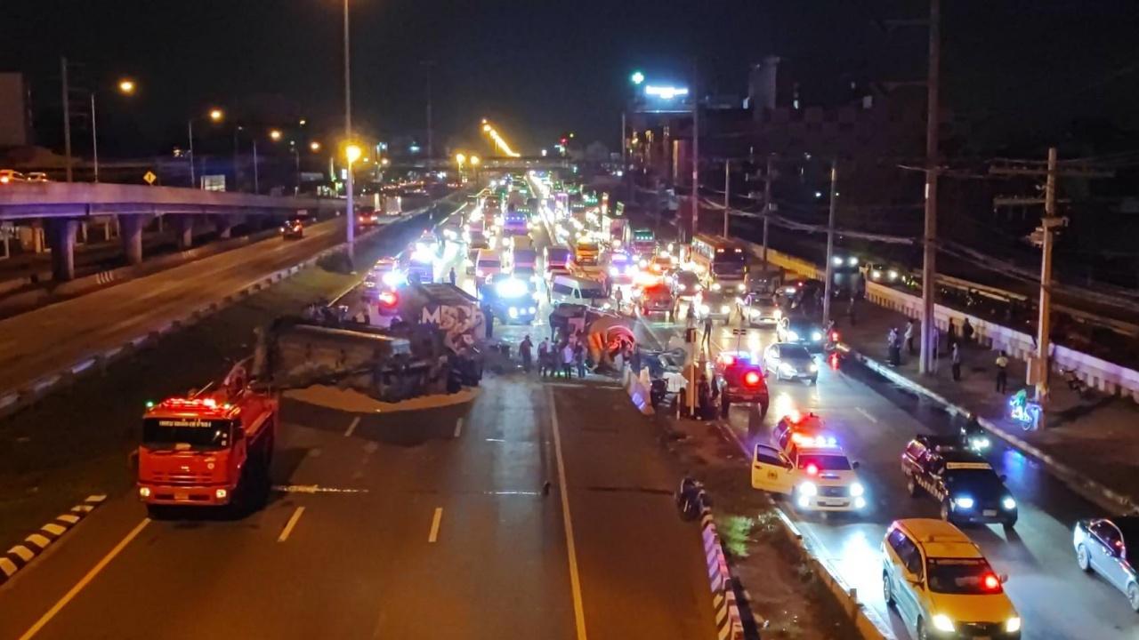 เมื่อเวลา 23.30 น. วันที่ 26 ก.ค. 65 พ.ต.ท.ศิโรจน์ แนบเนียน สว.(สอบสวน) สภ.คลองหลวง รับแจ้งอุบัติเหตุรถชนกันหลายคัน มีผู้บาดเจ็บและเสียชีวิต เหตุเกิดบนถนนพหลโยธินขาออก ช่องทางด่วน กม.46+600 ต.คลองหนึ่ง อ.คลองหลวง จ.ปทุมธานี จึงเดินทางไปตรวจสอบ พร้อม พ.ต.ท.สิงหา เฟื่องแก้ว สว.จร.สภ.คลองหลวง เจ้าหน้าที่ตำรวจจราจร สภ.คลองหลวง เจ้าหน้าที่ตำรวจทางหลวงอยุธยา แพทย์นิติเวช รพ.ธรรมศาสตร์เฉลิมพระเกียรติ รถกู้ชีพเทศบาลเมืองท่าโขลง เจ้าหน้าที่อาสาหงสกุล เจ้าหน้าที่อาสาร่วมด้วยช่วยกัน และเจ้าหน้าที่กู้ภัยมูลนิธิร่วมกตัญญู