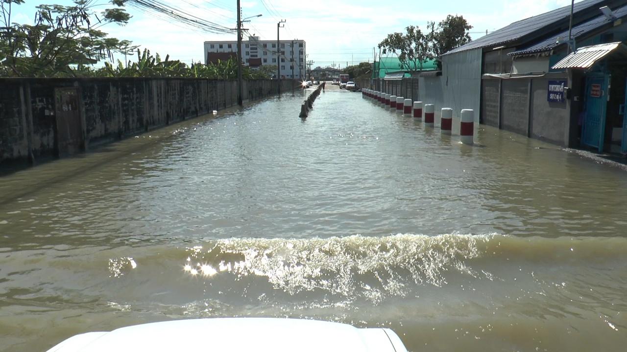 ภายหลังรับแจ้ง ผู้สื่อข่าวได้ลงพื้นที่ไปที่ซอยดังกล่าว พบเป็นถนนคอนกรีต กว้างประมาณ 8-12 เมตร ลักษณะลาดเอียงต่ำกว่าพื้นถนนสายหลัก ช่วงต้นซอยประมาณ 200 เมตรแรก น้ำไม่ท่วม มีรถขนาดเล็กจอดเรียงรายอยู่เต็ม 2 ข้างทาง เนื่องจากไม่สามารถนำรถลุยน้ำท่วมเข้าไปได้ ส่วนอีกประมาณ 500 เมตรจนถึงท้ายซอย ถูกน้ำท่วมขังสูง 30-50 เซนติเมตร จากการสำรวจพบว่า ซอยนี้ส่วนใหญ่เปิดเป็นบริษัทฯ และมีบ้านเรือนประชาชนอยู่ด้านหลังติดริมคลอง ซึ่งสังเกตได้จากเสาไฟกินรี ที่ปักติดอยู่บริเวณทางเท้าหลังกำแพง