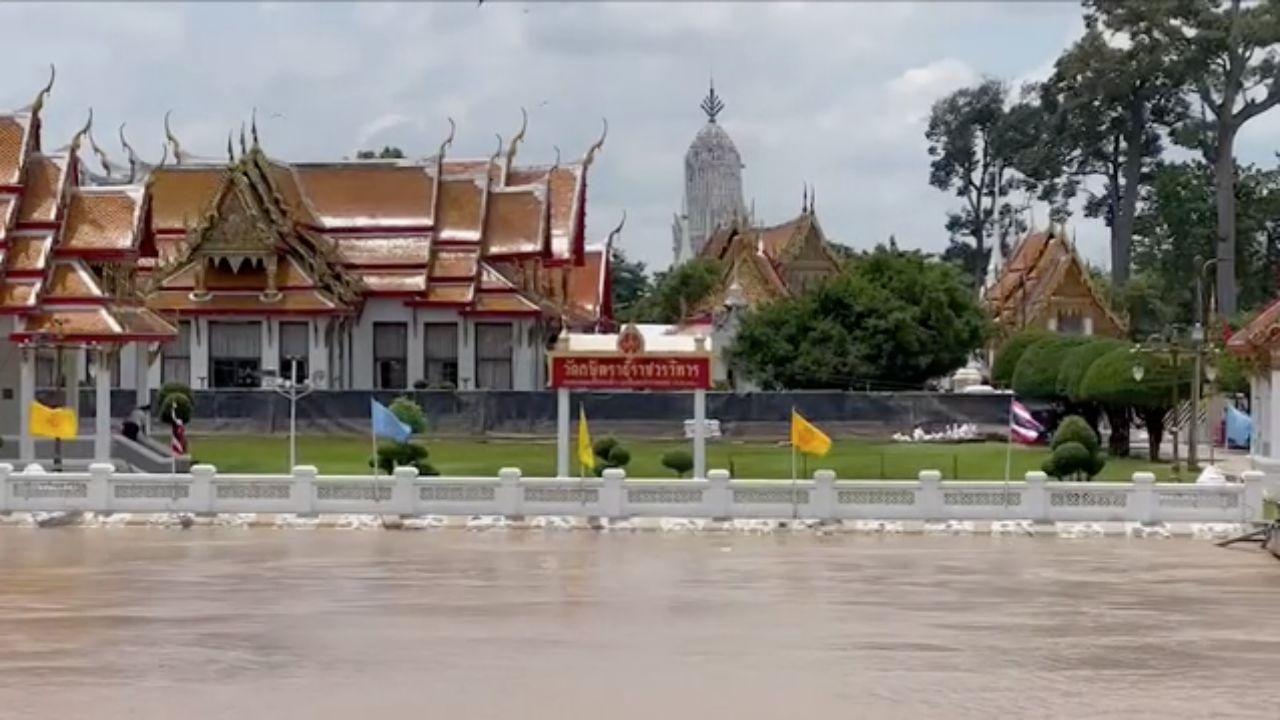 ส่วนที่ แม่น้ำเจ้าพระยา ด้านหน้าวัดกษัตราธิราชวรวิหาร อ.พระนครศรีอยุธยา จ.พระนครศรีอยุธยา ระดับน้ำก็เริ่มเพิ่มสูงขึ้นมากเช่นกัน หลายวัดหลายสถานที่สำคัญริมน้ำเตรียมการป้องกันกันแล้ว ซึ่งน้ำยังต่ำกว่าตลิ่งในบางจุด 20-30 เซนติเมตร แต่เขตเกาะเมืองที่เป็นพื้นที่ลุ่มต่ำเริ่มถูกน้ำท่วมหลายจุดแล้วเช่นกัน.