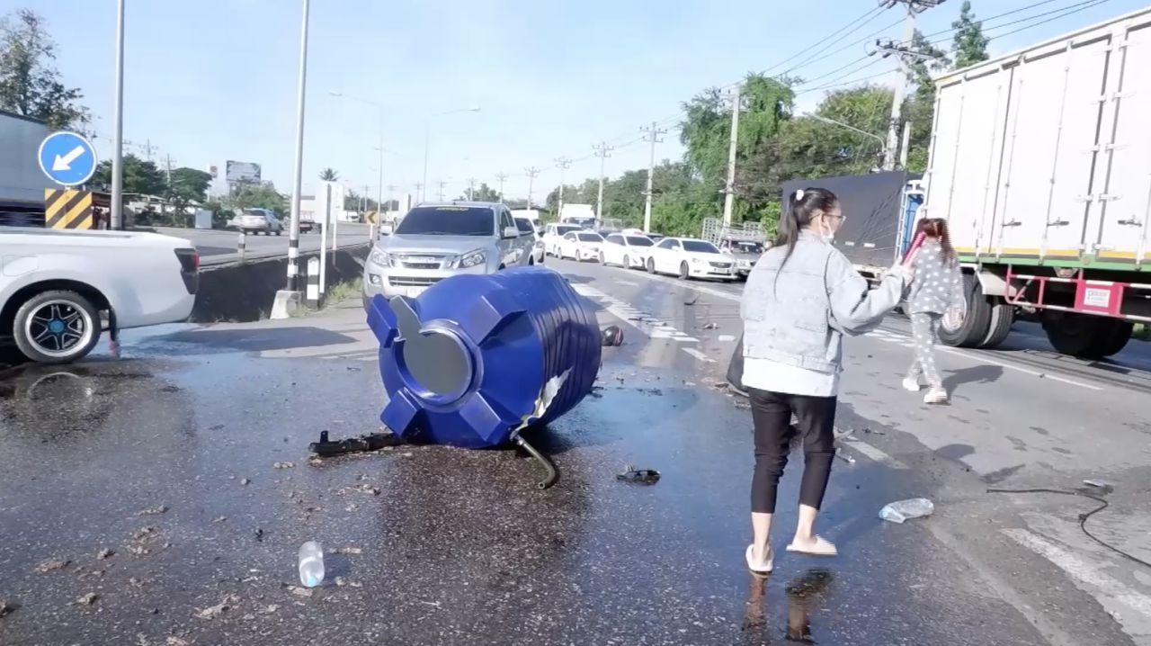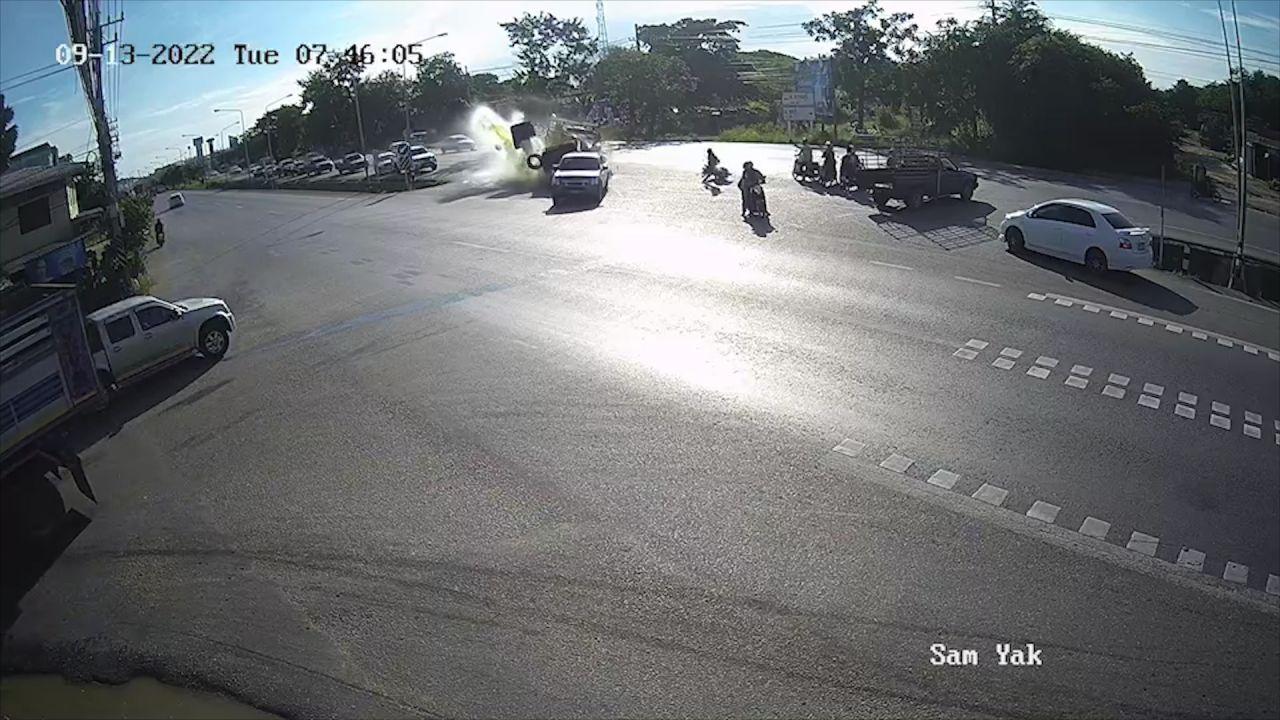 เมื่อตรวจสอบภาพจากกล้องวงจรปิดที่บันทึกเหตุการณ์ ปรากฏภาพรถกระบะยี่ห้อโตโยต้าสีขาวตอนเดียว ทะเบียน ผฉ 5606 นครศรีธรรมราช บรรทุกไตปลาบรรจุปี๊บมาเต็มคัน มุ่งหน้าจะลงภาคใต้ เมื่อมาถึงที่เกิดเหตุมีรถจอดรอเพื่อจะกลับรถหลายคัน จู่ๆ มีรถกระบะสีขาวมีรั้ววิ่งเข้ามาชนรถที่จอดอยู่เต็มแรง กระทั่งรถกระเด็นข้ามถนนไปอีกฝั่ง ไปชนกับรถเทรลเลอร์ที่วิ่งสวนมาได้รับความเสียหาย และตกลงไปในข้างทาง ส่วนรถกระบะที่ด้านหลังบรรทุกถังน้ำมันดีเซลถูกชนจนหน้ารถพังยับ ถังน้ำมันถูกแรงกระแทก กระเด็นลอยตกไปกระแทกพื้นถนน ถังแตกทำให้น้ำมันไหลนองกระจายทั่วบริเวณ