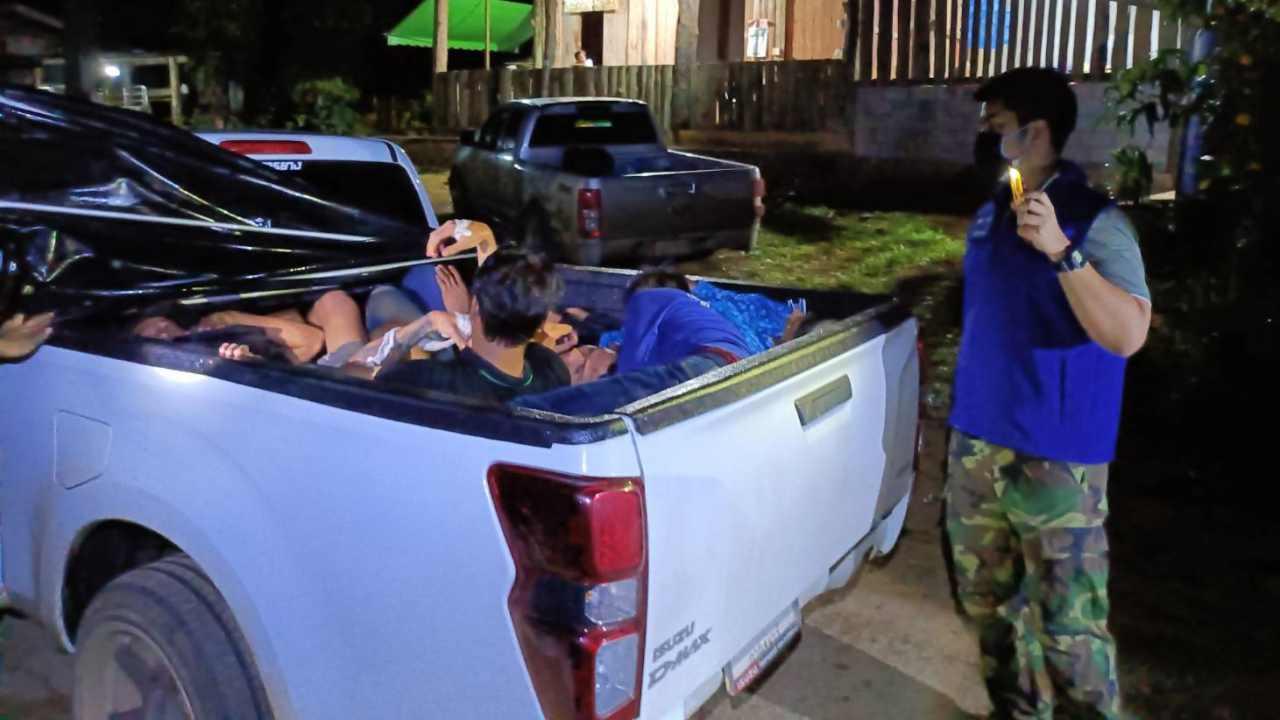 เวลา 22.00 น. วันที่ 13 กันยายน 2565 ภายใต้การอำนวยการของ นายจีระเกียรติ ภูมิสวัสดิ์ ผู้ว่าราชการจังหวัดกาญจนบุรี โดยมี นายเนรมิต เหลืองอร่ามฟ้า นายอำเภอไทรโยค สั่งการให้ นายกิรติ จิณแพทย์ ปลัดอาวุโสอำเภอไทรโยค นายสุชาย ไม้แก่นจันทร์ ปลัดอำเภอหัวหน้าฝ่ายความมั่นคง นายกิตติคุณ อินบุญ ปลัดป้องกัน นางสาวกมลวรรณ จันทนา ปลัดอำเภอไทรโยค สมาชิกกองอาสารักษาดินแดนอำเภอไทรโยคที่ 7 ตชด.136 ตำรวจสภ.ไทรโยค ทหารชุด ปชด.ที่ 1 บูรณาการปฏิบัติหน้าที่จุดตรวจ อส.บ้านบ้องตี้น้อย ม.8 ต.วังกระแจะ อ.ไทรโยค พบรถยนต์ขับเข้ามาจะผ่านจุดตรวจจึงเรียกให้หยุดตรวจ พบว่าเป็นขบวนการลักลอบขนแรงงานต่างด้าวหลบหนีเข้าเมือง