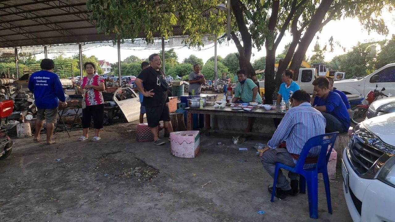เมื่อเวลา 17.30 น. วันที่ 16 กันยายน 2565 ผู้สื่อข่าวไปที่ ส.รุ่งเรืองเชียงกง (คนมันเฮง) บ้านเลขที่ 92 หมู่ 6 บ้านดอนตะไล้ ต.อุโลกสี่หมื่น อ.ท่ามะกา จ.กาญจนบุรี เป็นอู่เชียงกงขนาดใหญ่ ขายอะไหล่รถยนต์ รถบรรทุก พบว่ามีคนงาน พนักงาน จับกลุ่มรวมตัวกันที่ซุ้มโคนต้นไม้หน้าอู่ กำลังปิ้งหมู เนื้อ รับประทานกัน ต่างดีใจไชโยกัน