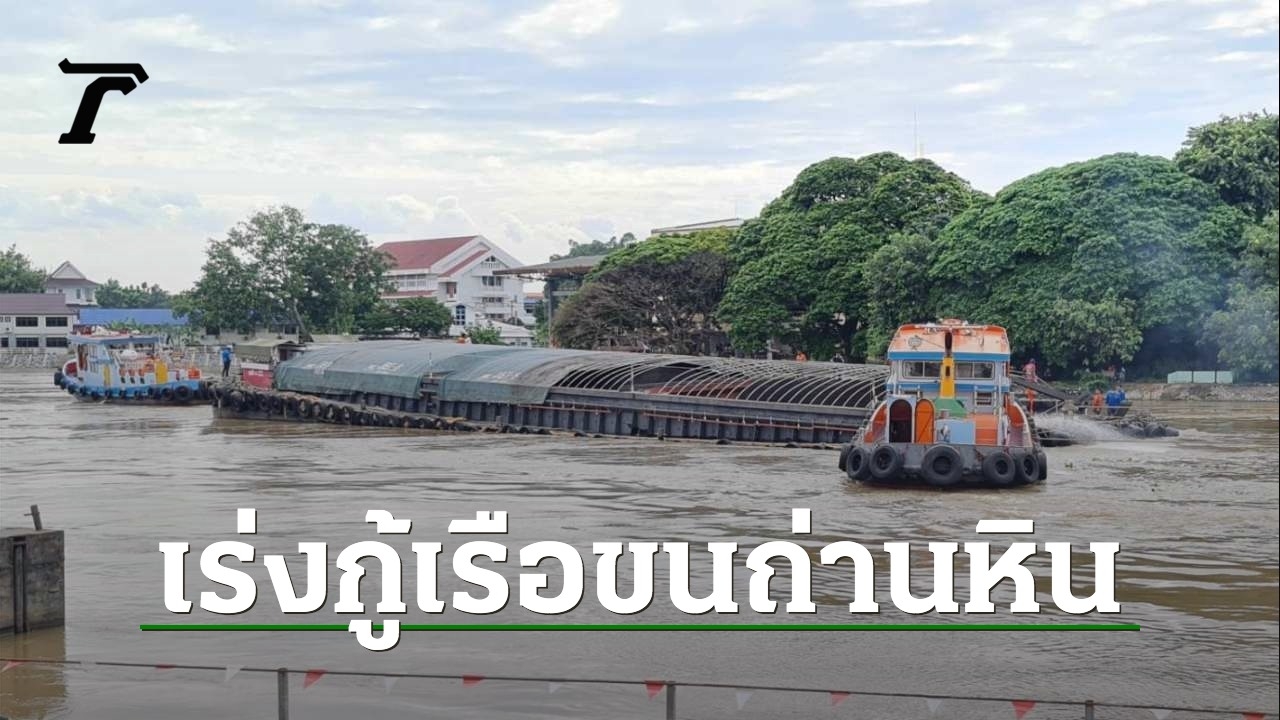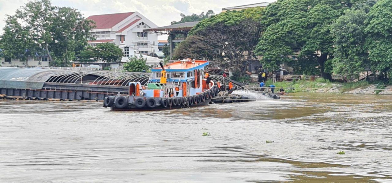 เรือลำเลียงถ่านหินกระแทกแนวก่อสร้างเขื่อนป้องกันตลิ่งของกรมเจ้าท่า ก่อนกระดอนชนกันเองจนตัวเรือเป็นรูน้ำทะลักหวิดจมในแม่น้ำป่าสัก ใกล้สามแยกวิทยาลัยต่อเรือฯ อยุธยา จนท.กำลังเร่งกู้ปั๊มน้ำออก