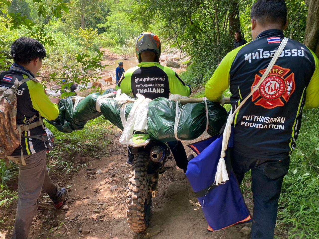 นายอมร จิตพรหมมา หน.หน่วยกู้ภัยพุทไธสวรรย์ ได้บันทึกสถานที่เกิดเหตุ ก่อนลำเลียงศพลงจากยอดเขาด้วยการแบก ซึ่งเป็นไปอย่างยากลำบากเนื่องจากมีฝนตกลงมาอย่างต่อเนื่อง ทำให้เสียเวลากับการสร้างเส้นทางเดินมาตลอดทาง ซึ่งกว่าจะถึงพื้นราบก็หลายชั่วโมง จากนั้นกู้ภัยฯ ได้ใช้รถจักรยานยนต์ลำเลียงศพลัดเลาะมาจนถึงอ่างเก็บน้ำซับตะเคียน นำศพมาลงเรือเพื่อเตรียมนำเข้าฝั่งเพื่อรอนำส่ง รพ.ชัยบาดาลเพื่อให้แพทย์ได้ทำการชันสูตรพลิกศพ