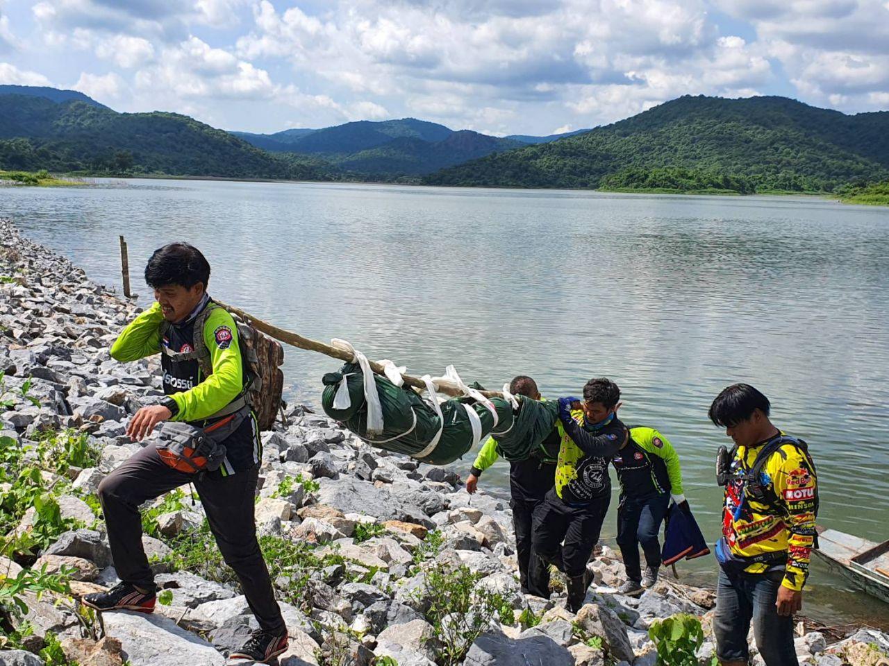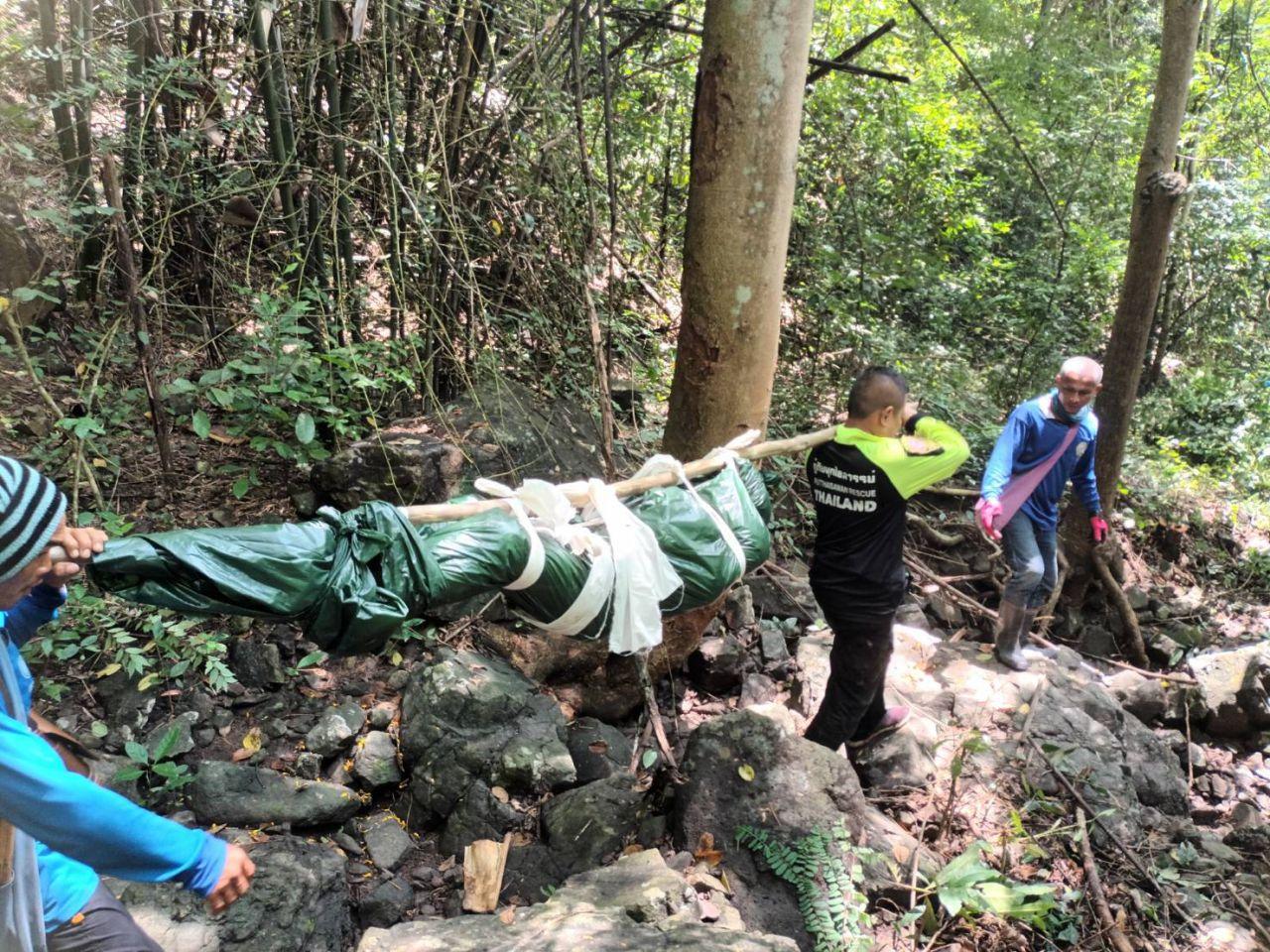 หนุ่มคนหาของป่าหายไป 5 วัน กู้ภัยลพบุรีช่วยออกตามหา พบเป็นศพถูกหินทับตายจนอืดเน่าบนเขาหัวช้าง โดยกู้ภัยห่อร่างมัดติดเปลแบกลงเขาฝ่าสายฝน มาต่อ จยย.ขี่ไปส่งลงเรือ เพื่อชันสูตรที่ รพ.ชัยบาดาล
