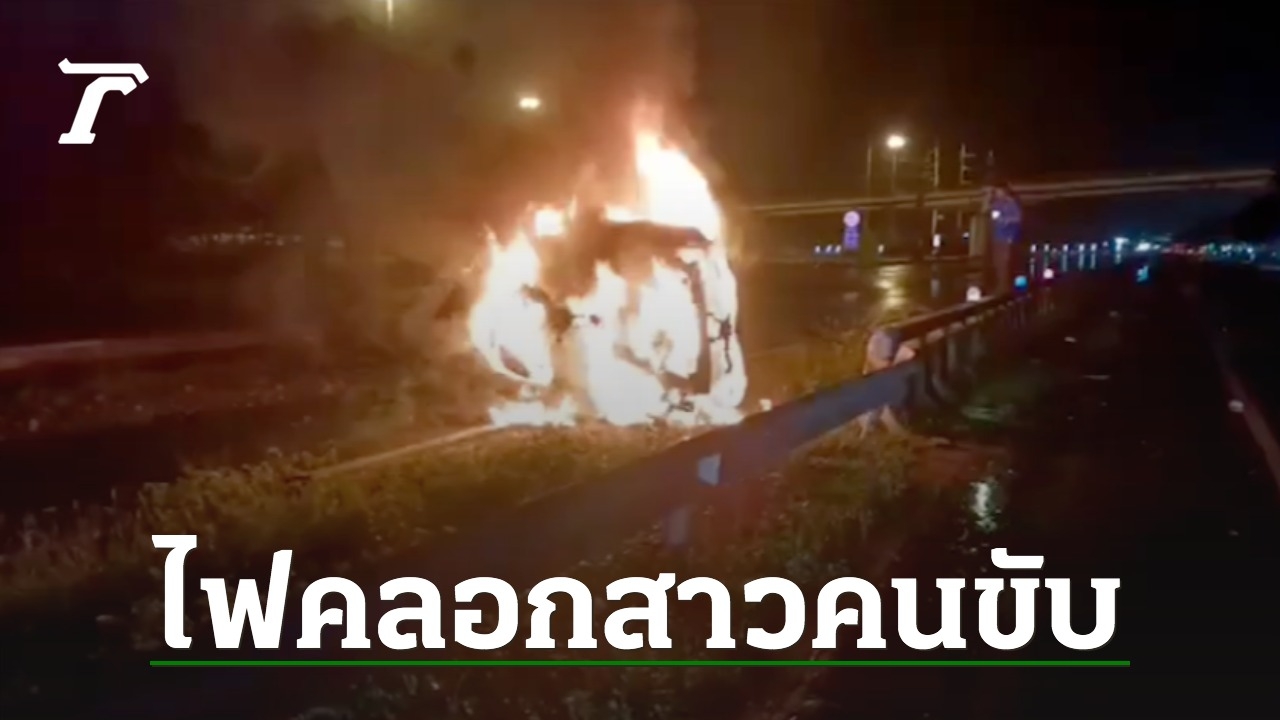 หญิงสาวขับรถเก๋งมาคนเดียว บนถนนกาญจนาภิเษกที่กำลังก่อสร้างขยายเส้นทาง ฝ่าสายฝนที่ตกตลอด เสียหลักชนการ์ดเลนพลิกคว่ำ เพลิงลุกไหม้รถวอดทั้งคัน คลอกคนขับสภาพไหม้เกรียม ยังไม่รู้เป็นใคร พบทาเล็บสีฟ้า