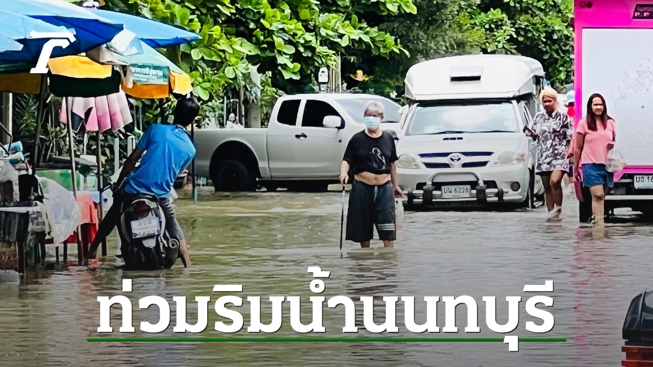 มวลน้ำเดินทางถึงนนทบุรีแล้ว ล้นแม่น้ำเจ้าพระยาท่วมชุมชนริมน้ำใน อ.ปากเกร็ด อ.เมืองนนทบุรี ชาวบ้านพ่อค้าแม่ค้าต้องเร่งขนของขึ้นที่สูง เผยน้ำมาเร็ว เพิ่มระดับขึ้นสูงภายในวันเดียว